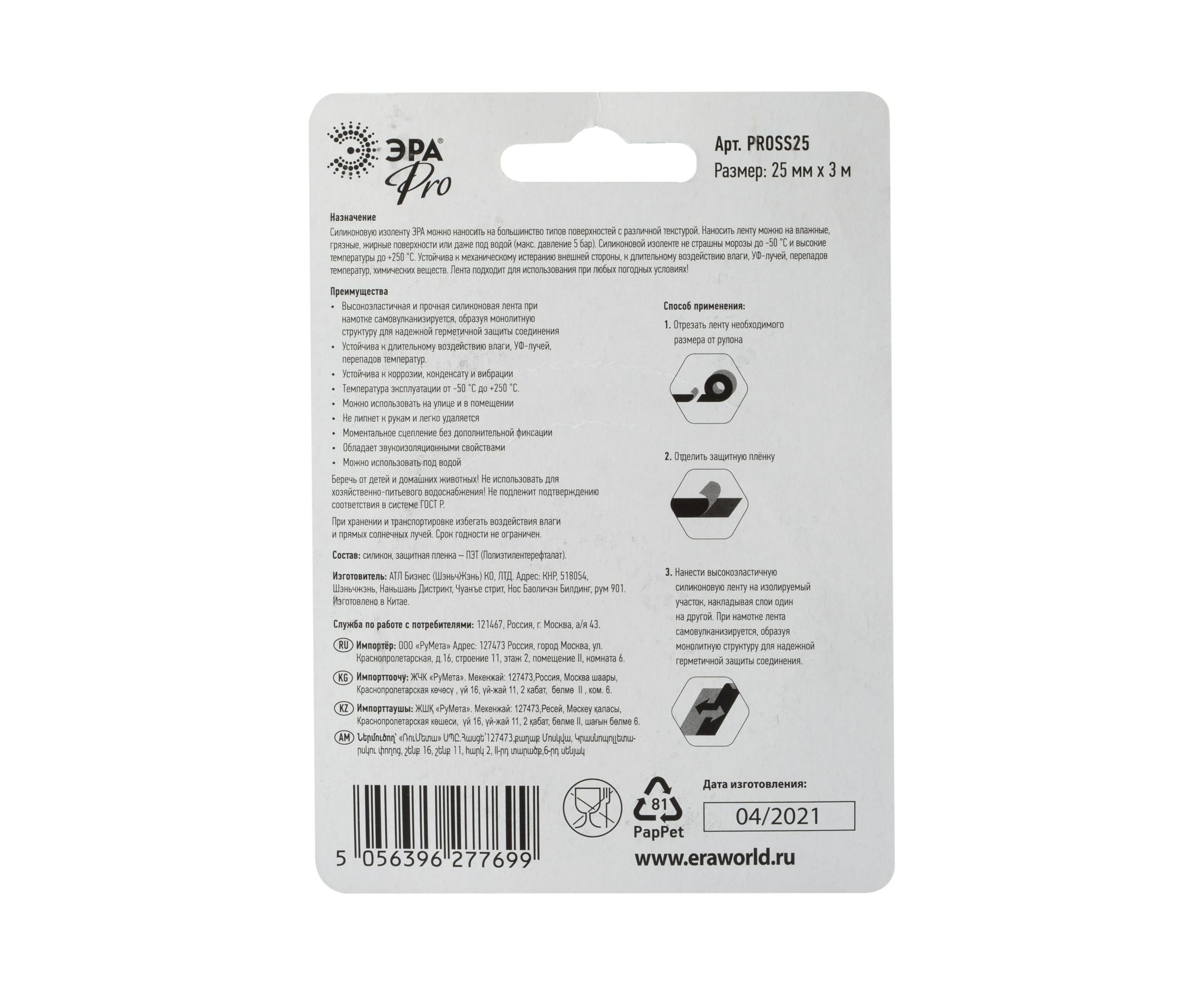 Силиконовая самослипающаяся изолента ЭРА PRO PROSS25, 25 мм х 3 м, черная Б0052254