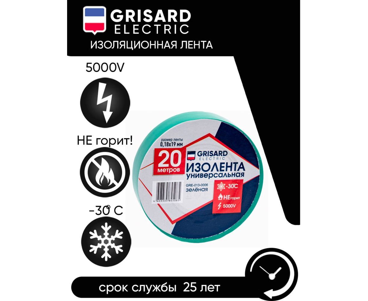 Универсальная изолента Grisard Electric 0,18x19 мм, зеленая, 20 м GRE-013-0006(1)