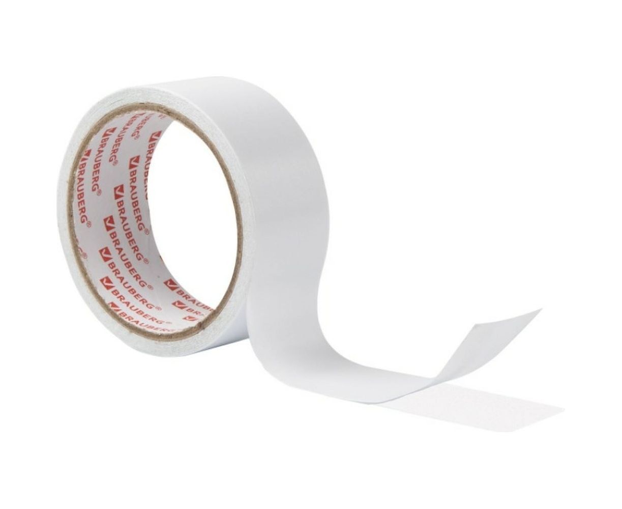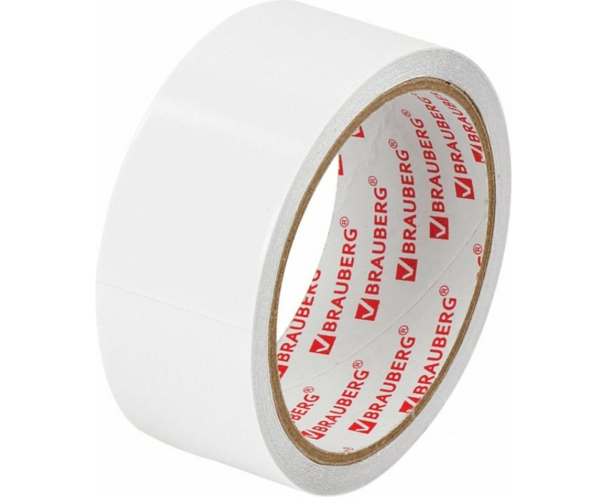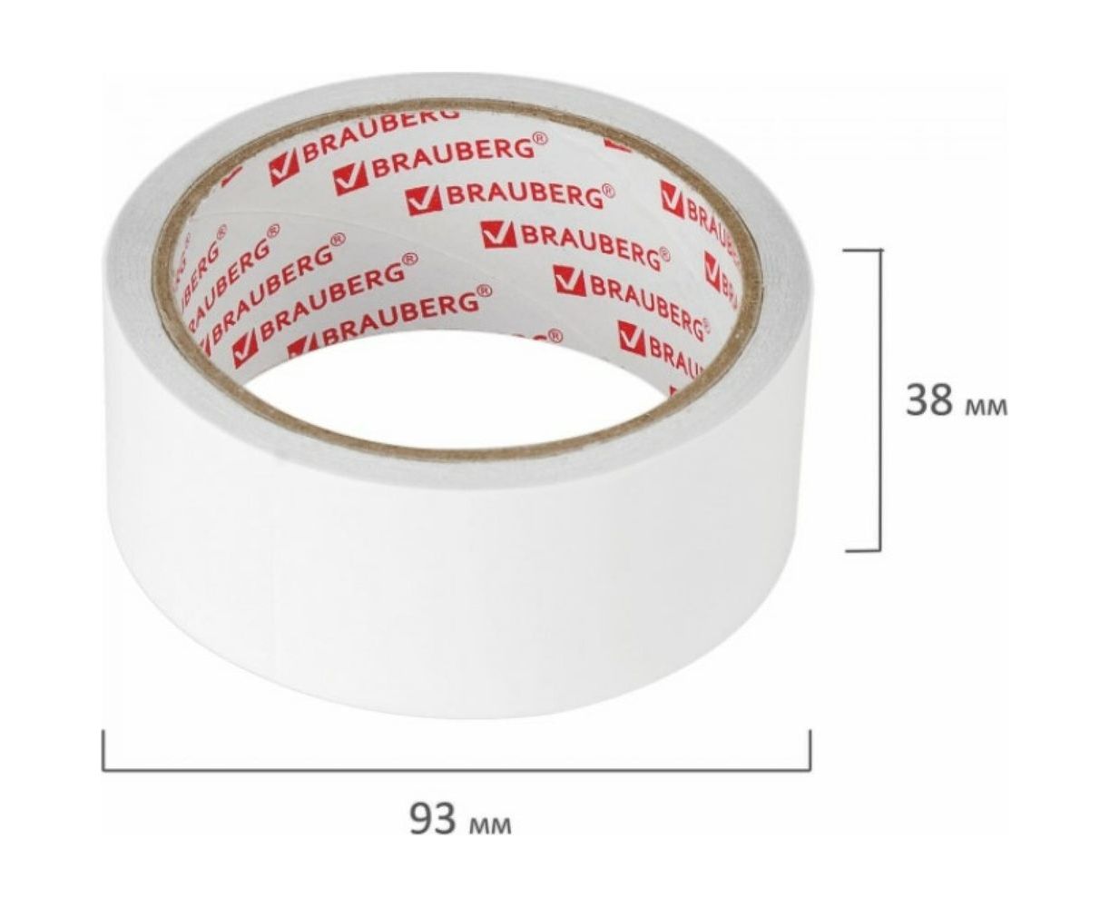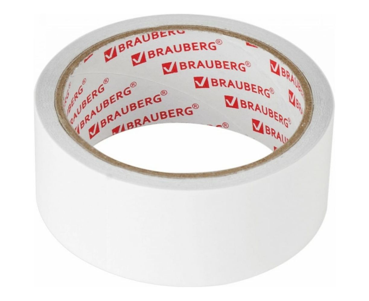 Двухсторонняя клейкая лента BRAUBERG 38 мм х 8 м, тонкая основа полипропилен, 90 микрон 600483
