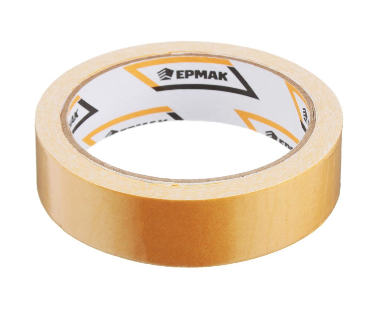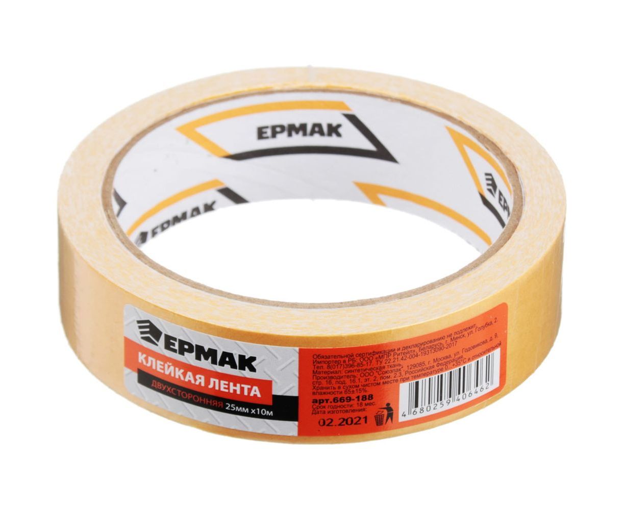 Двухсторонняя клейкая лента ЕРМАК 25 мм х 10 м, ткань осн., инд. упаковка 669-188
