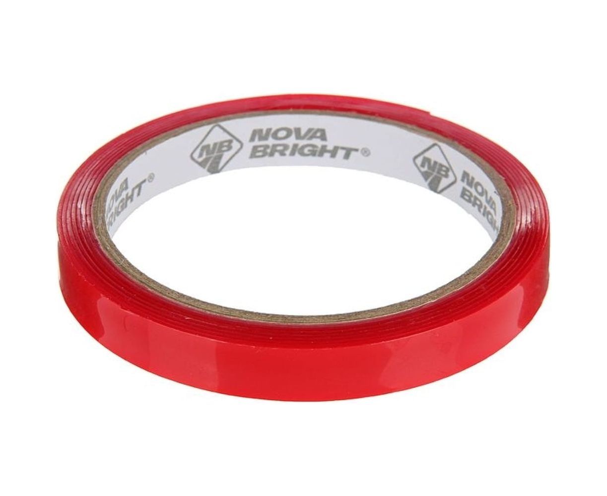 Двухсторонняя клейкая лента Nova Bright fusion красный + прозрачный (акриловая основа), 6 мм х 2 м 46660