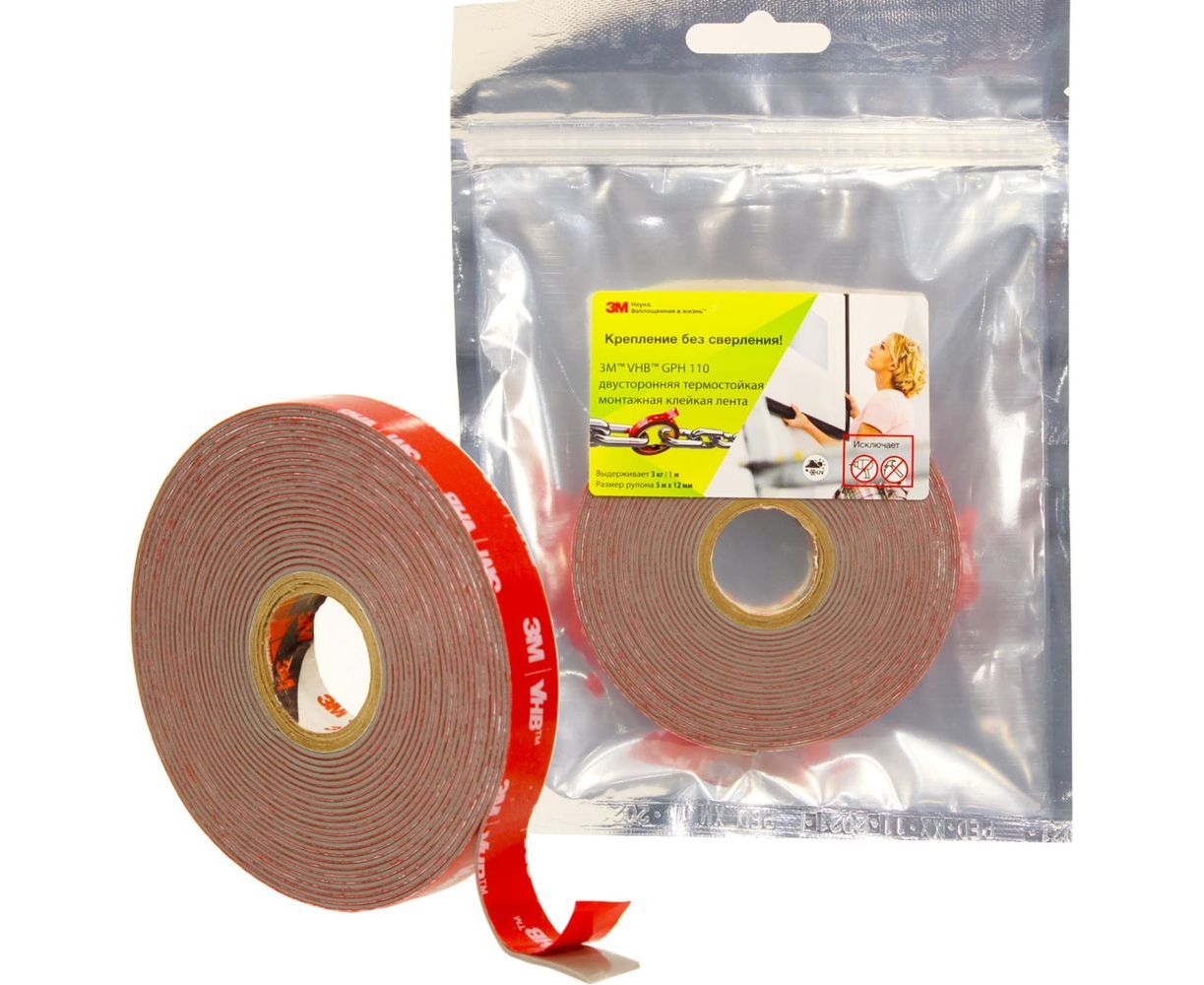 Двусторонняя термостойкая монтажная клейкая лента 3М GPH 110 12 мм, 5 м 4687201853794 обладает клеящим слоем из эластичного акрилового вспененного адгезива. Изделие обеспечивает надежную постоянную склейку. Лента отлично показывает себя в условиях высокотемпературных применений.