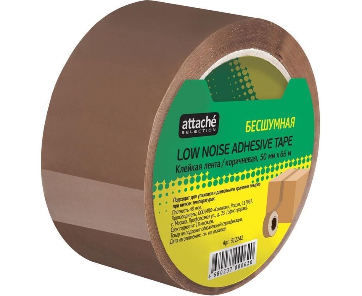 Клейкая лента Attache Selection бесшумная, 50 мм х 66 м, 48 мкм, коричневая 312242