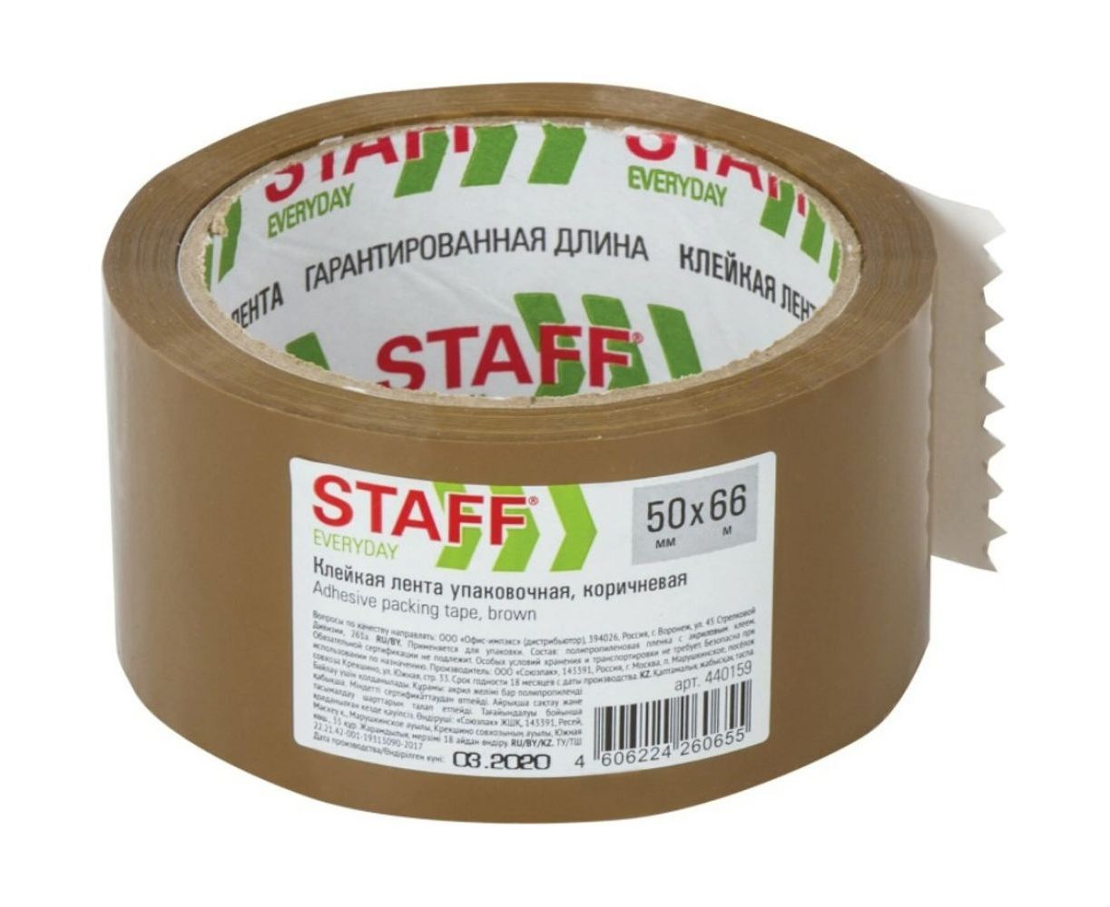 Клейкая лента STAFF 50 мм х 66 м упаковочная, КОРИЧНЕВАЯ ,толщина 40 микрон 440159