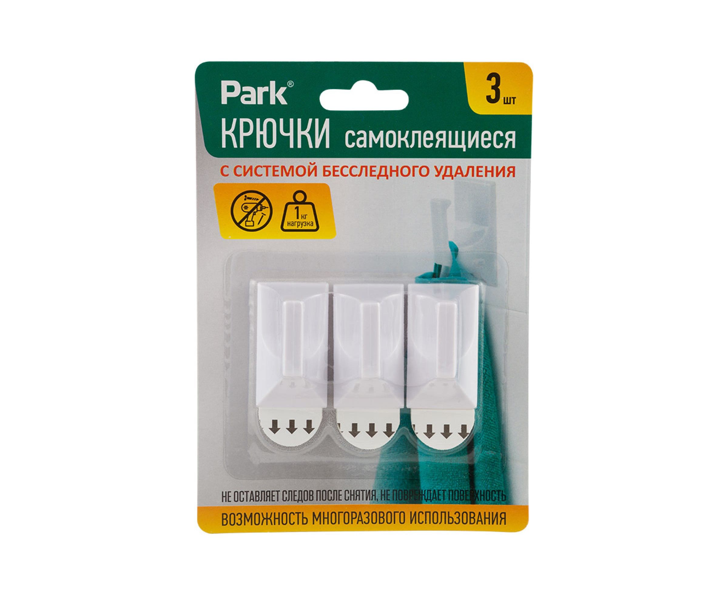 Самоклеящиеся крючки Park ABS-пластик, 2.5х4.5 см, 3 шт. 008079
