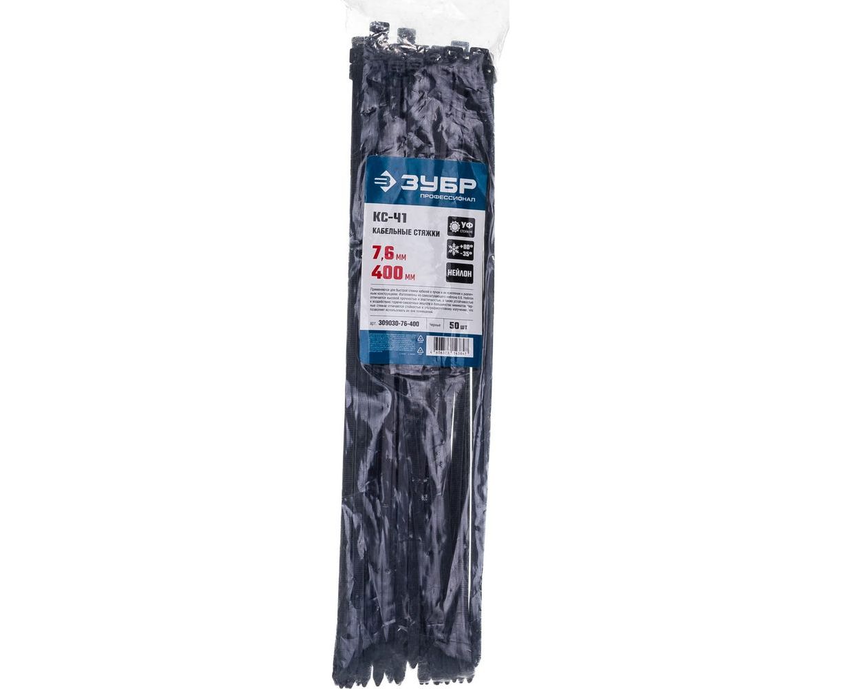 Нейлоновые хомуты Зубр черные, 7.6x400 мм, 50 шт. 309030-76-400