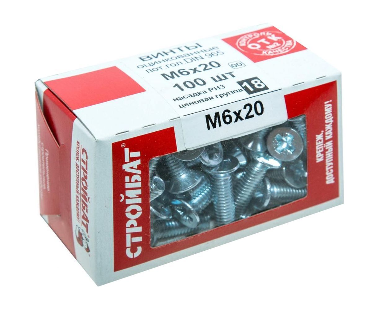 Оцинкованный винт с потайной головкой Стройбат DIN 965 М6x20 мм 100 шт. 2631162 106291