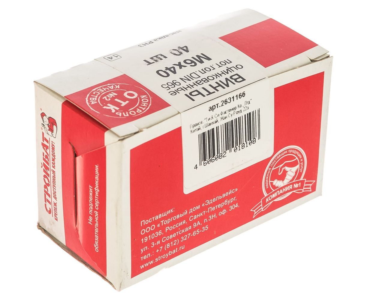 Оцинкованный винт с потайной головкой Стройбат DIN 965 М6x40 мм 40 шт. 2631166 106311