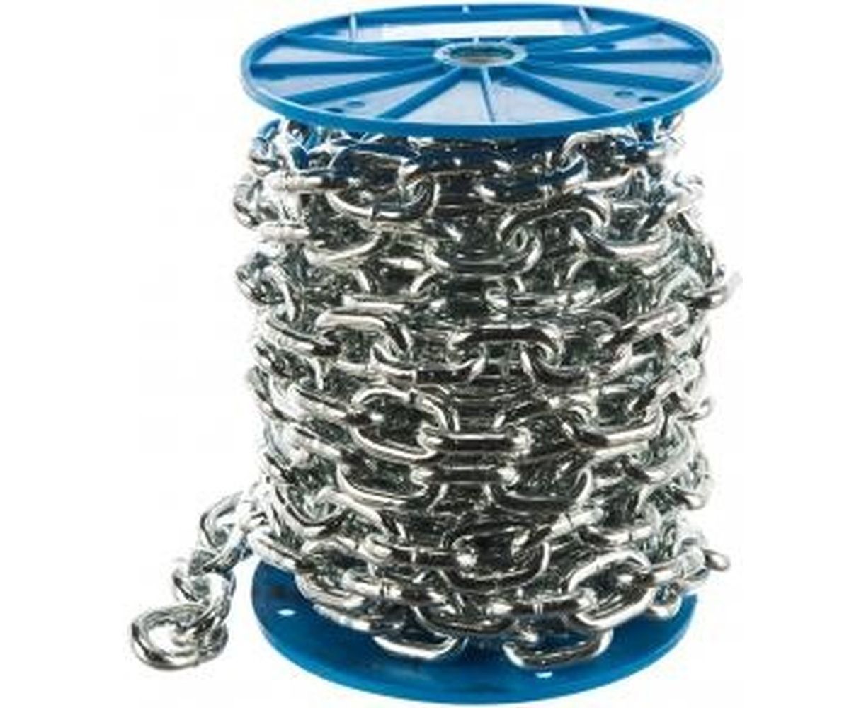 Цепь короткозвенная Зубр 4-304050-10 предназначена для перемещения грузов и их подъема на нужную высоту с помощью различных грузоподъемных устройств. Она изготовлена из оцинкованной углеродистой стали с помощью сварки. Цепь можно легко укорачивать до нужного размера путем образования петли, вставляя звено в звено. Не предназначена для ударных нагрузок. Характеристики: длина - 10 м; диаметр сечения тела звена - 10 мм.