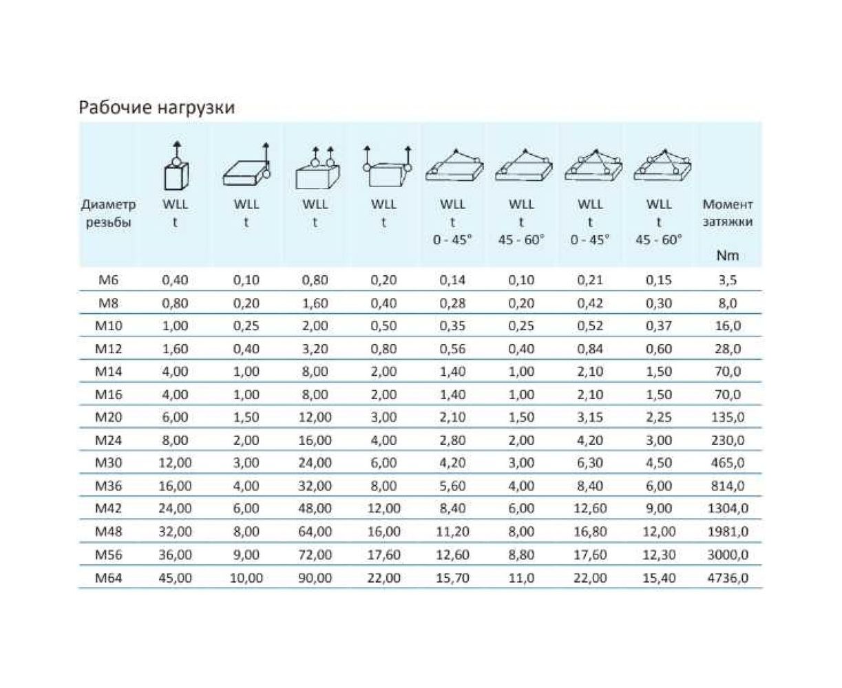- Максимальная грузоподъёмность вертикального подъёма указана на болте