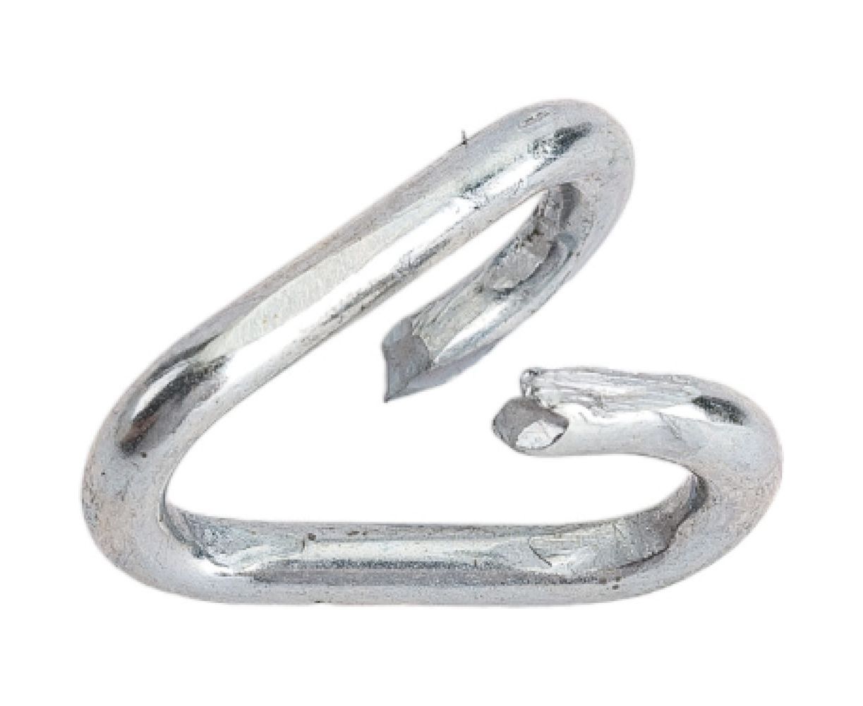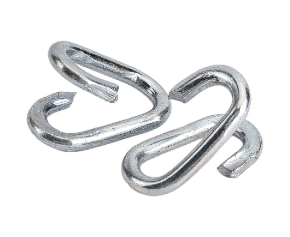 Соединитель цепи используется для сращивания цепных ветвей, замены поврежденных или изношенных звеньев. Представляет собой прут из оцинкованной стали, изогнутый по принципу канцелярской скрепки.