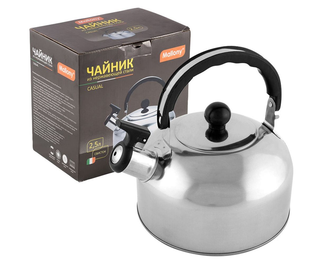 Чайник Mallony CASUAL, объем 2.5 л, из нержавеющей стали со свистком, зеркальная полировка 007297 предназначен для использования дома или в офисе.