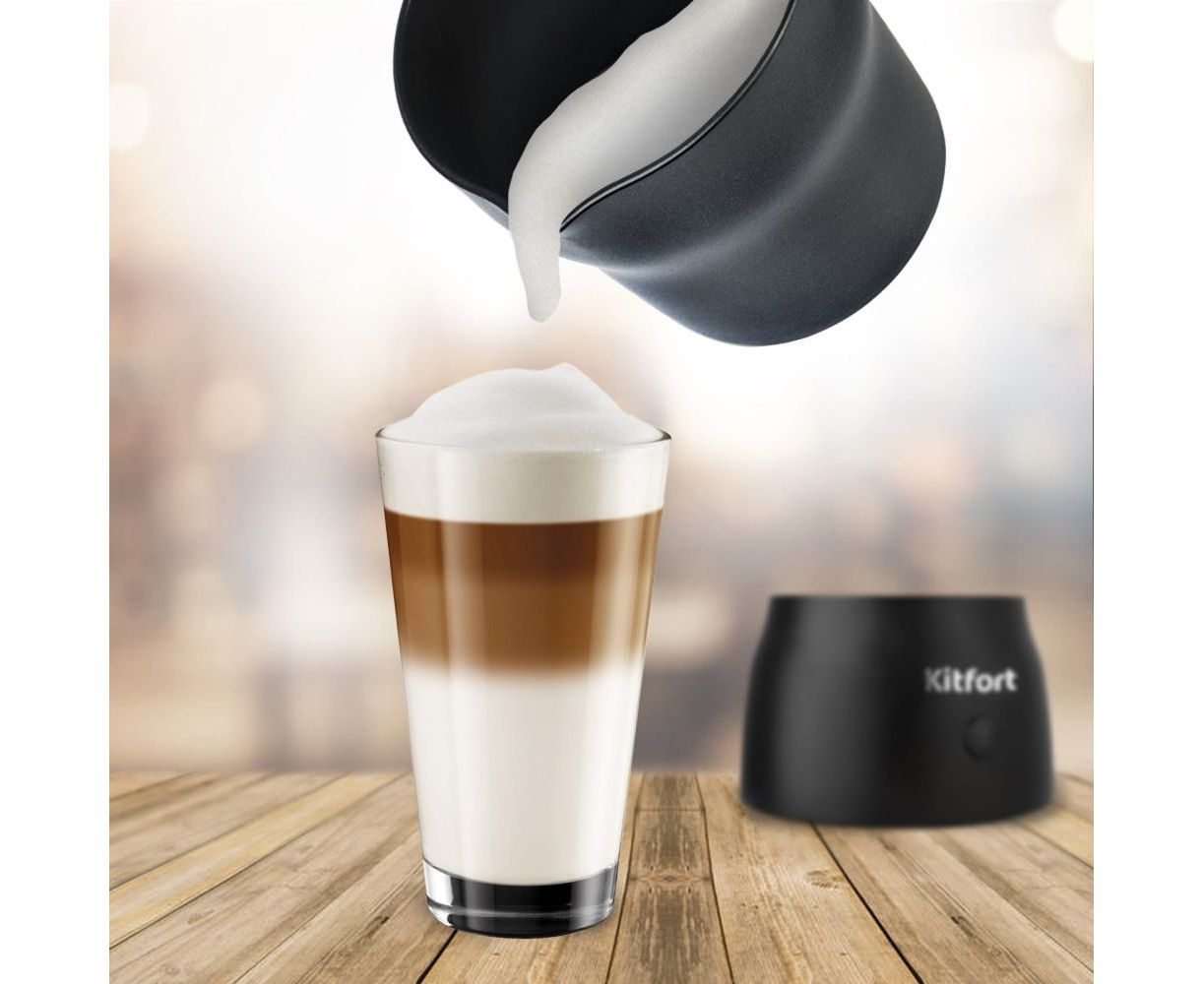 Капучинатор KITFORT 730 мл КТ-710 - это устройство для быстрого приготовления молочной пенки. Он работает в трех режимах: горячее вспенивание, холодное вспенивание и подогрев.