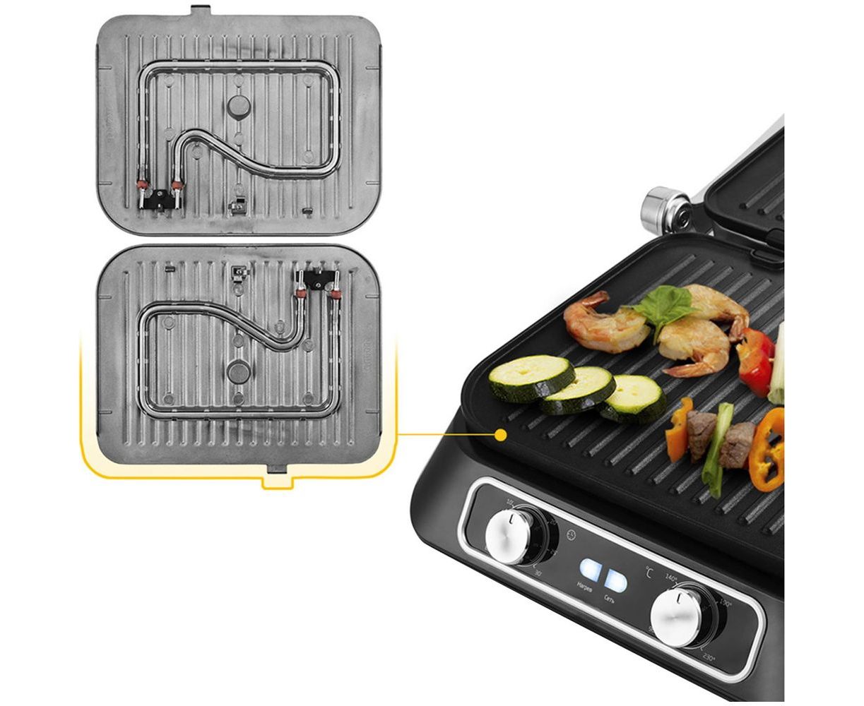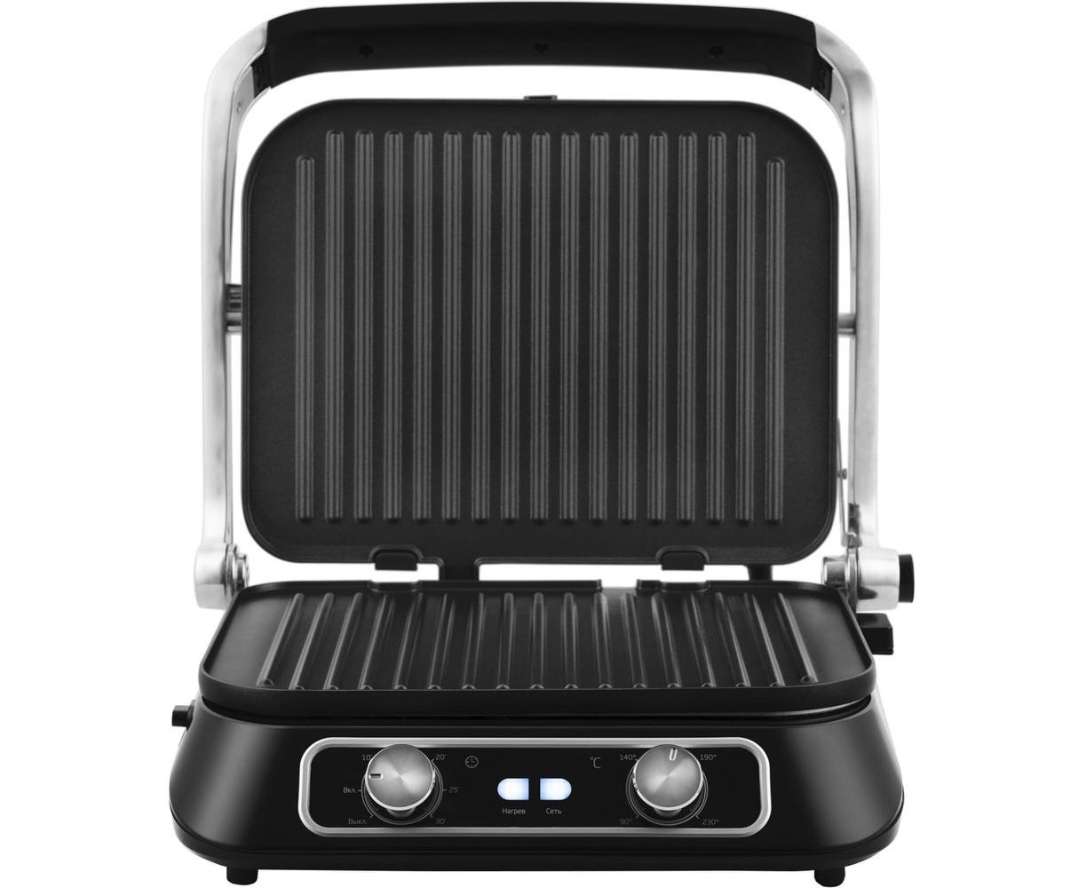 В одностороннем режиме крышка гриля откидывается на 180°, и гриль превращается в большую жаровню. Для приготовления можно использовать обе поверхности.