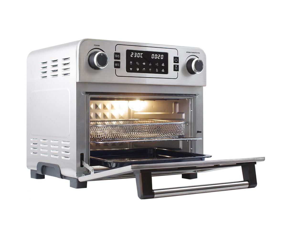 Многофункциональная мини-печь с функцией аэрогриля GFGRIL GFAO-700 выполнена из нержавеющего металла в стильном дизайне серебристого цвета. Высокая мощность 1700 Вт обеспечит быстрое приготовление продуктов.