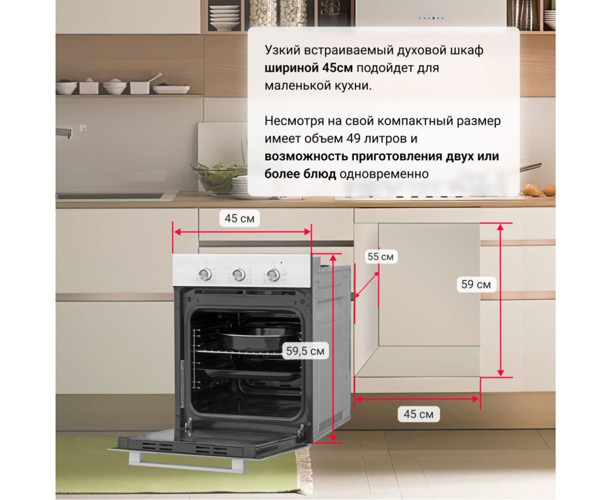 Таймер подскажет, когда блюдо будет готово, а двойное стекло защити от ожога при случайном прикосновении к дверце шкафа.