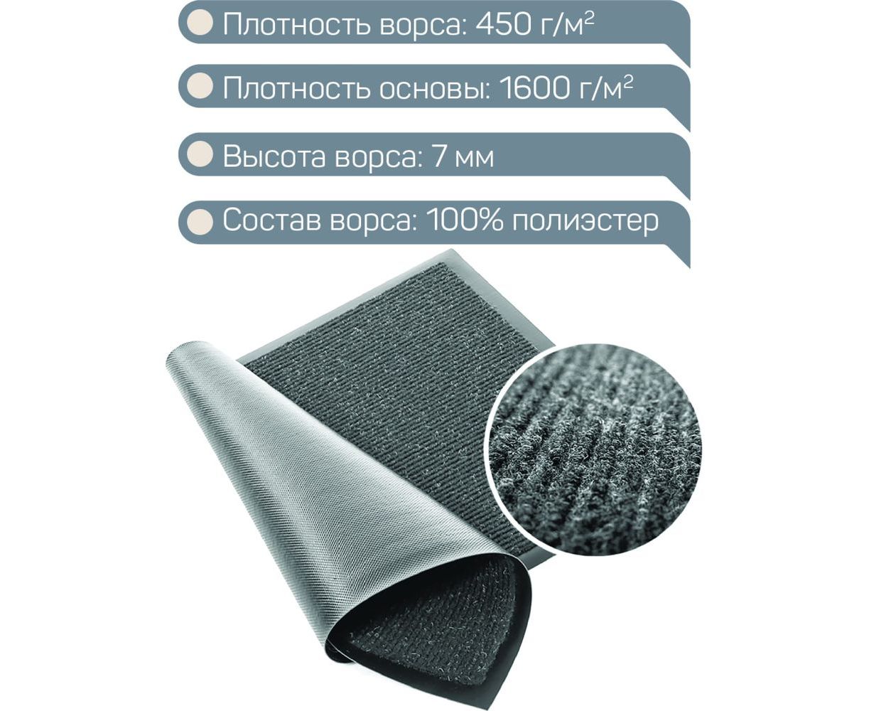 Влаговпитывающий коврик In'Loran 60x90 см., КОМФОРТ, серый 20-694 на виниловой основе. Плотность ворса 450 г/кв.м. Плотность основы 1600г/кв.м. Высота ворса ~7 мм. Состав ворса 100% полиэстер. Тип покрытия - иглопробивное.