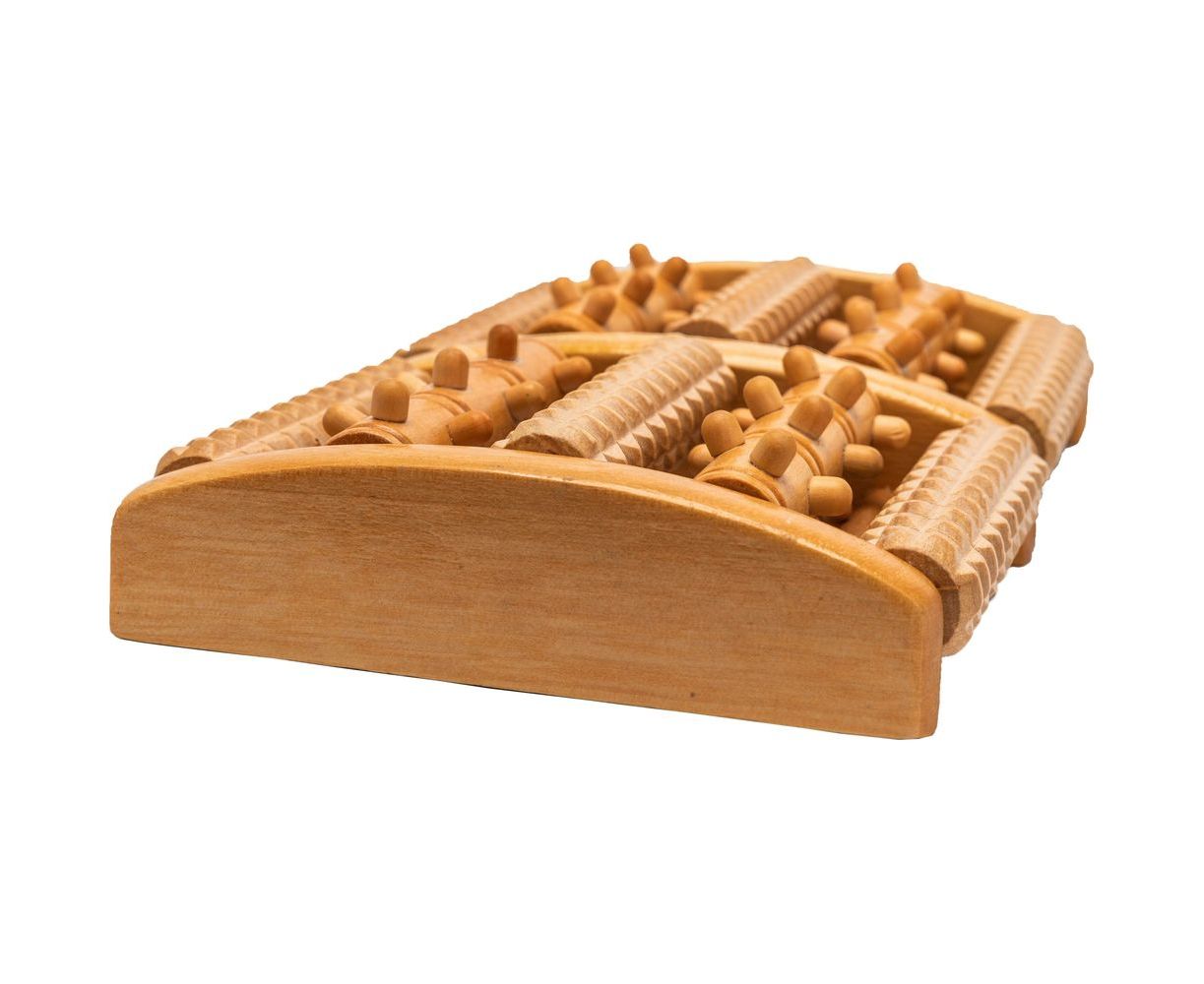 Десять массажных роликов из натурального дерева с шипами разной формы усиливают циркуляцию крови, снимают мышечное напряжение, дарят ощущение комфорта и расслабления.