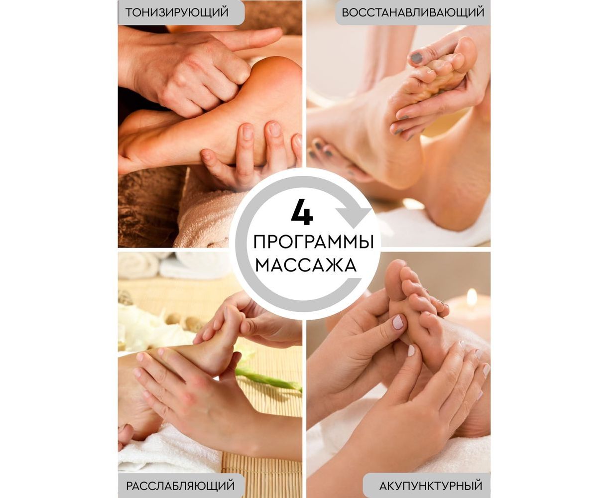 Имеет 4 функции: роликовый массаж стоп, компрессионный массаж лодыжек, вибрационный массаж и инфракрасный подогрев.