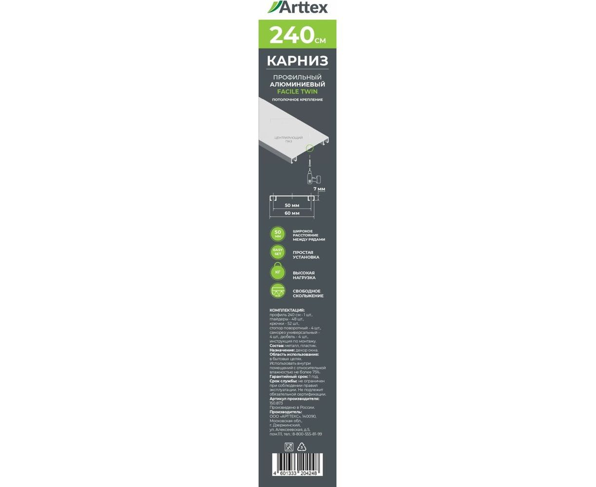 Профильный алюминиевый карниз Arttex Facile twin 240 см белый А0000031777 предназначен для декорирования окон.
