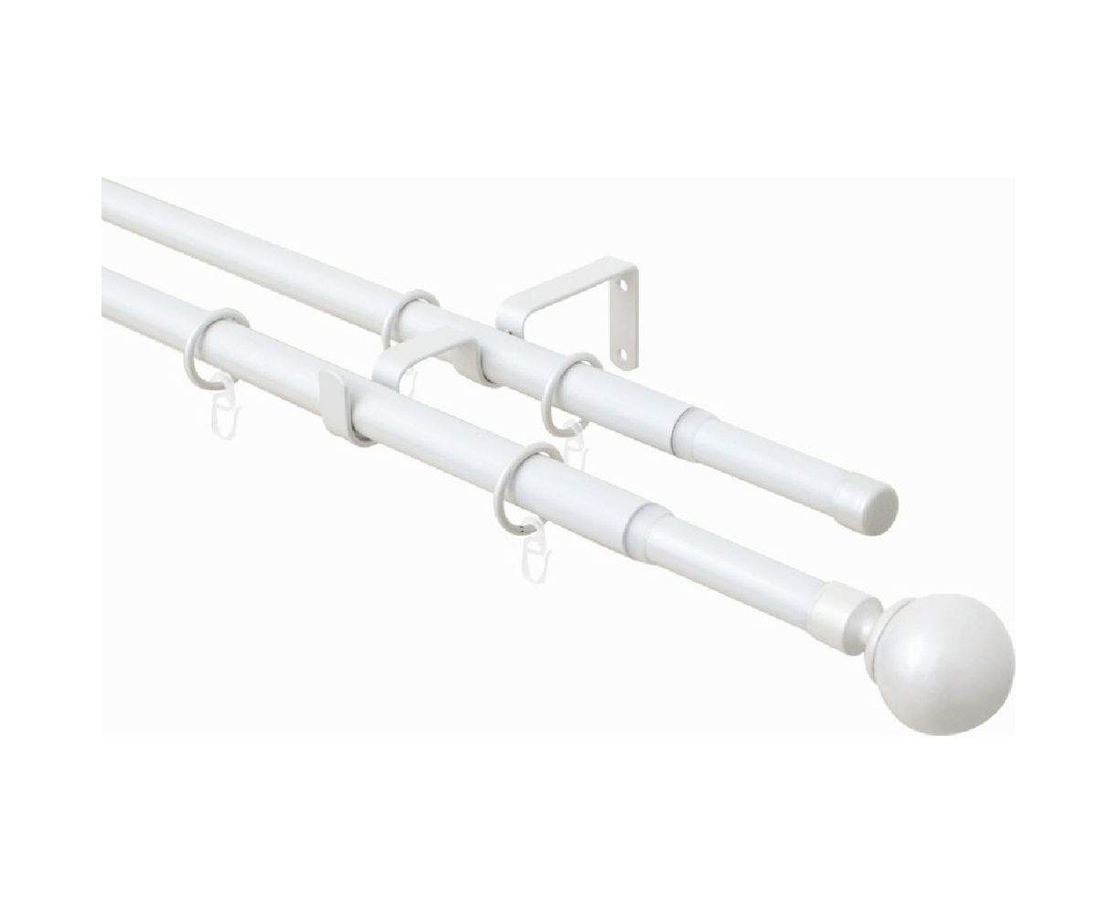 Телескопический металлический двухрядный карниз для штор Arttex 300 см, Шар, белый А0000032112