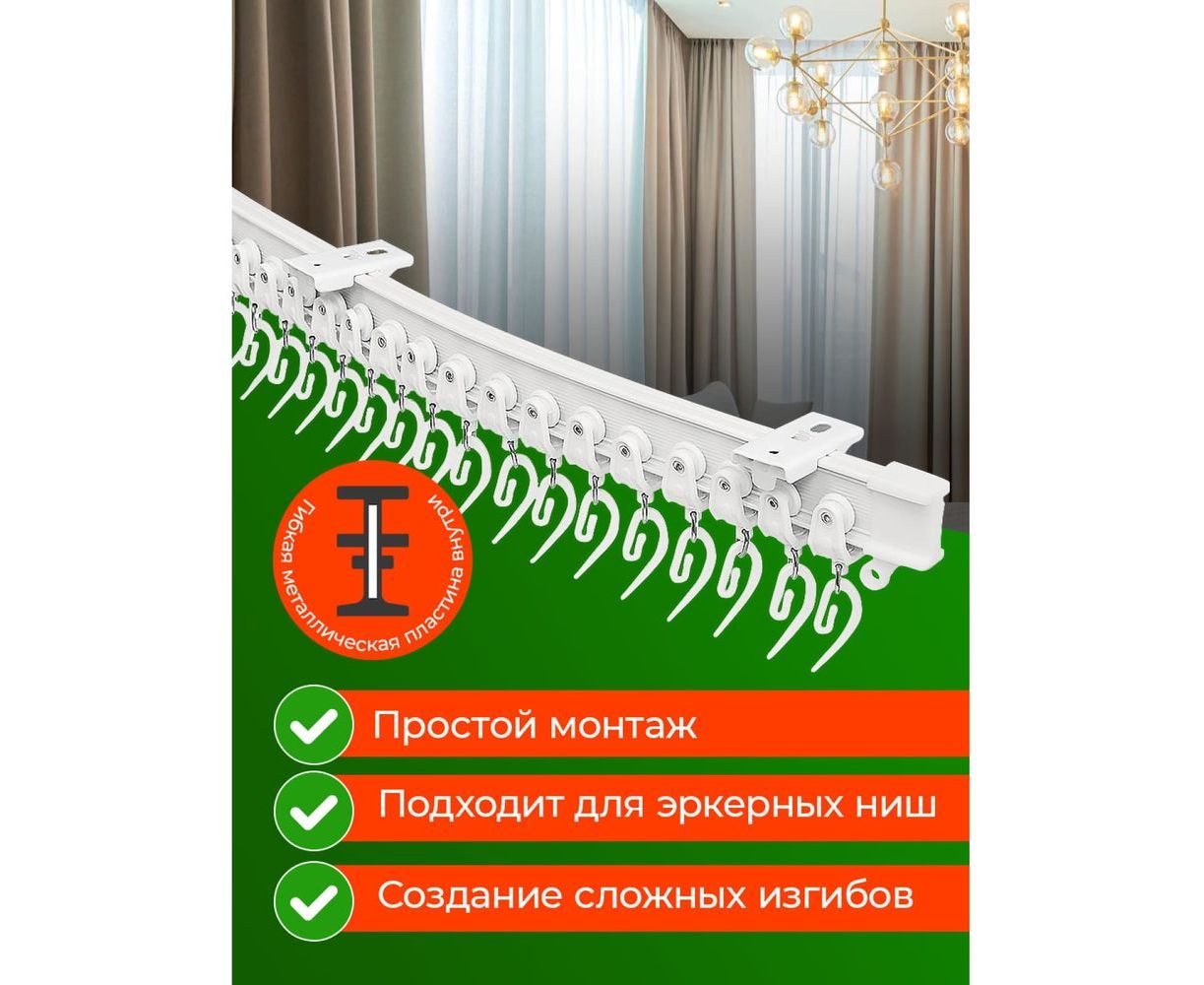 За счет гибкости карниз легко принимает желаемую форму.