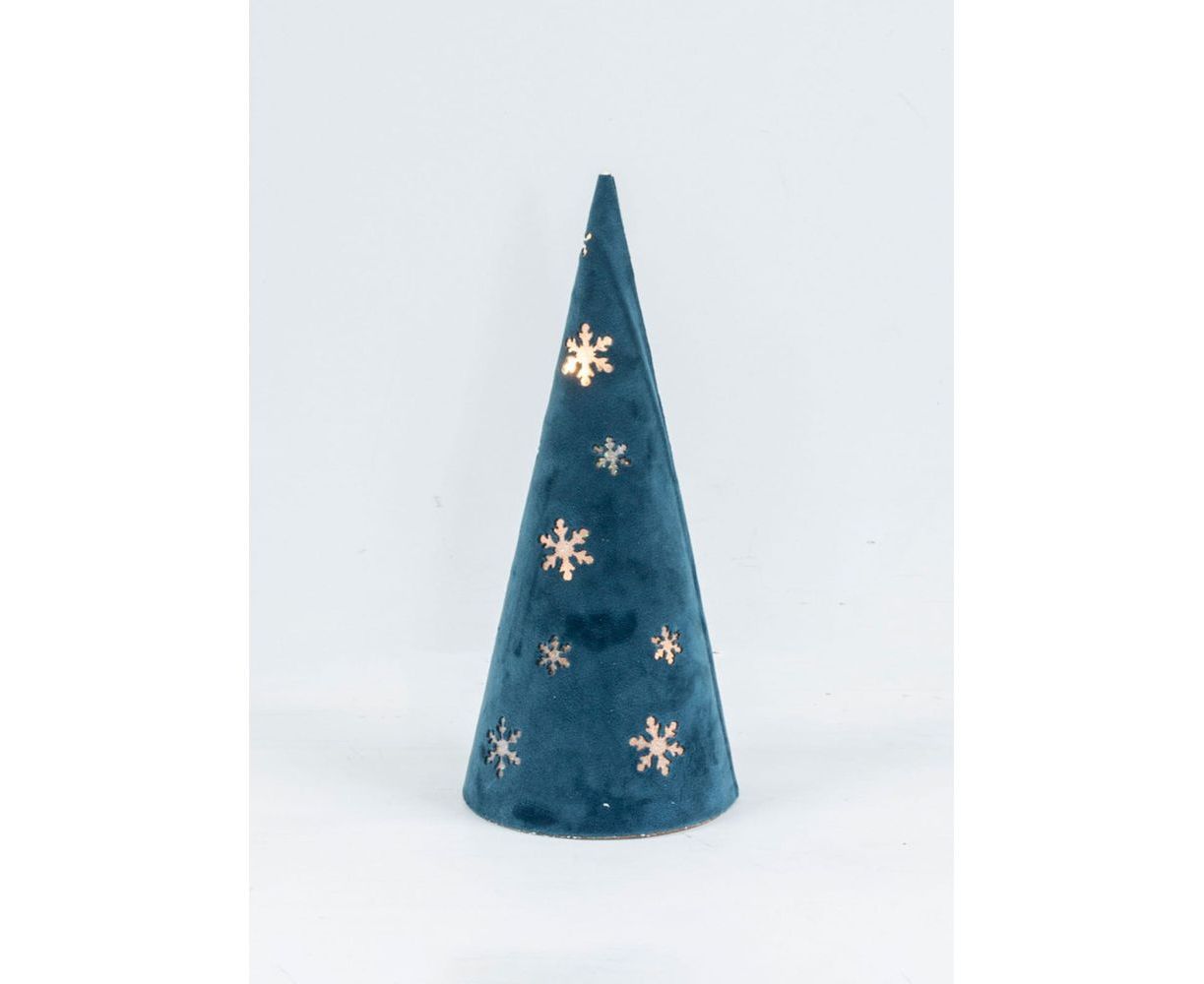 Синяя и бархатная елочка, снаружи с вырезами для 8 светодиодов, окутает помещение теплым белым светом. Елочка-конус может украсить собой новогодний стол, любую полочку или подоконник, вернет в детство, где повсюду были напоминания о любимом празднике. Работает от 2-х батареек АА.