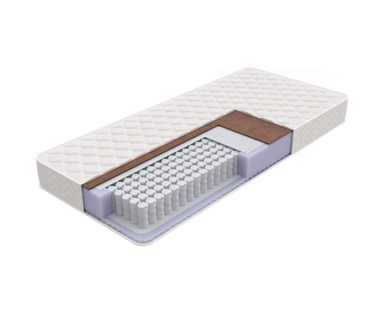 Комфортный и практичный двусторонний матрас с разной степенью жесткости на основе инновационного блока независимых пружин 420 шт. на спальное место. Независимый пружинный блок распределяет нагрузку по всей поверхности спального места, снимает мышечное напряжение и поддерживает позвоночник в правильном положении во время сна. Меняйте ощущение от матраса когда захочется, за счет разной жесткости сторон. Пена с массажным эффектом — низкая степень жесткости. Латексированная кокосовая койра — средняя степень жесткости.