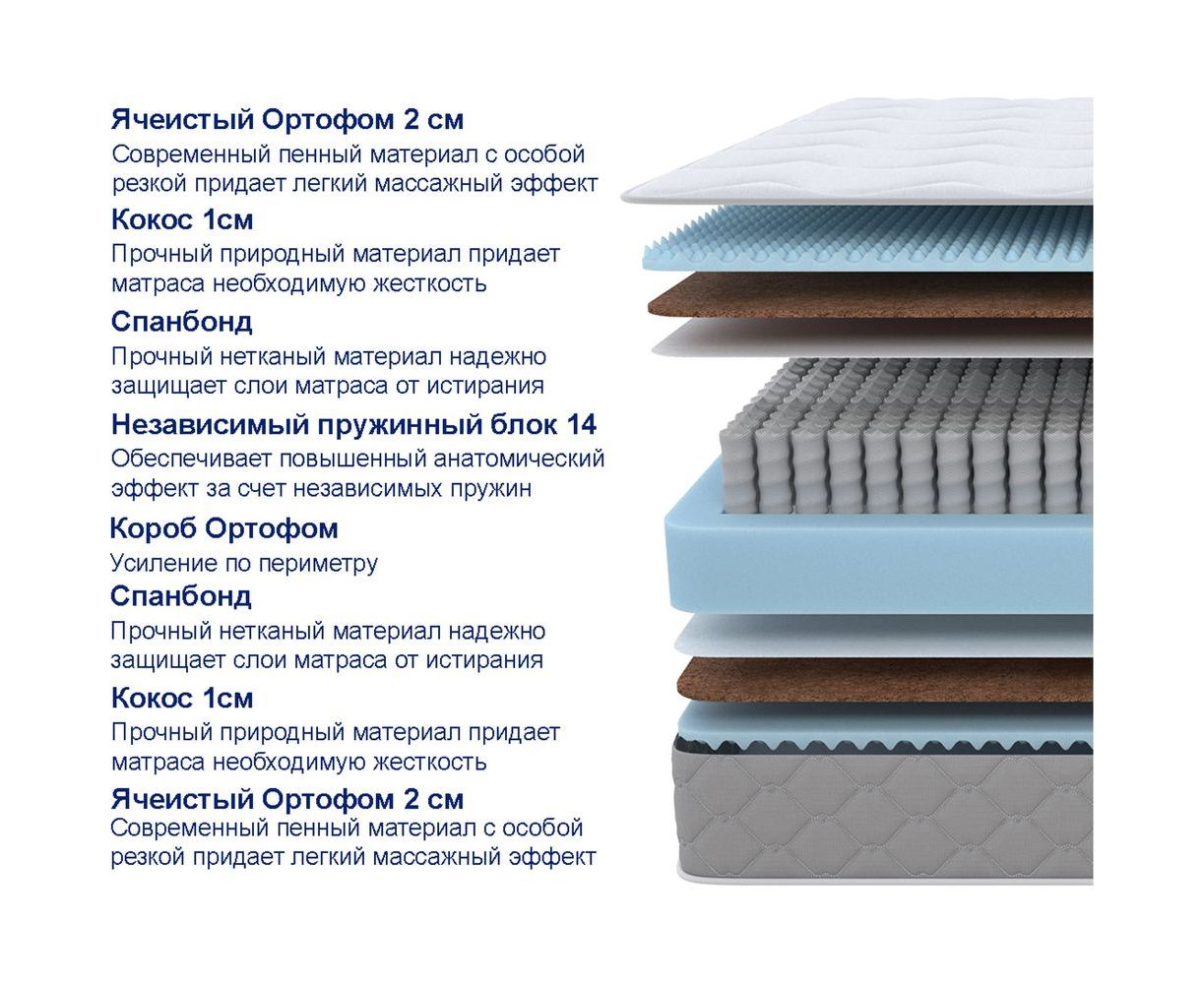 Кокосовое волокно в составе матраса позволяет ему выдерживать большие нагрузки и гарантирует долговечность.