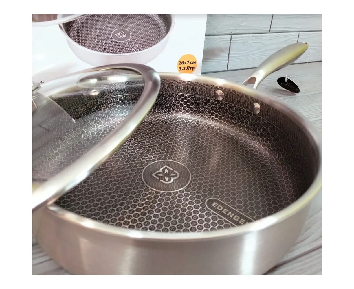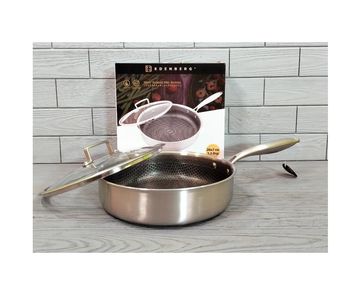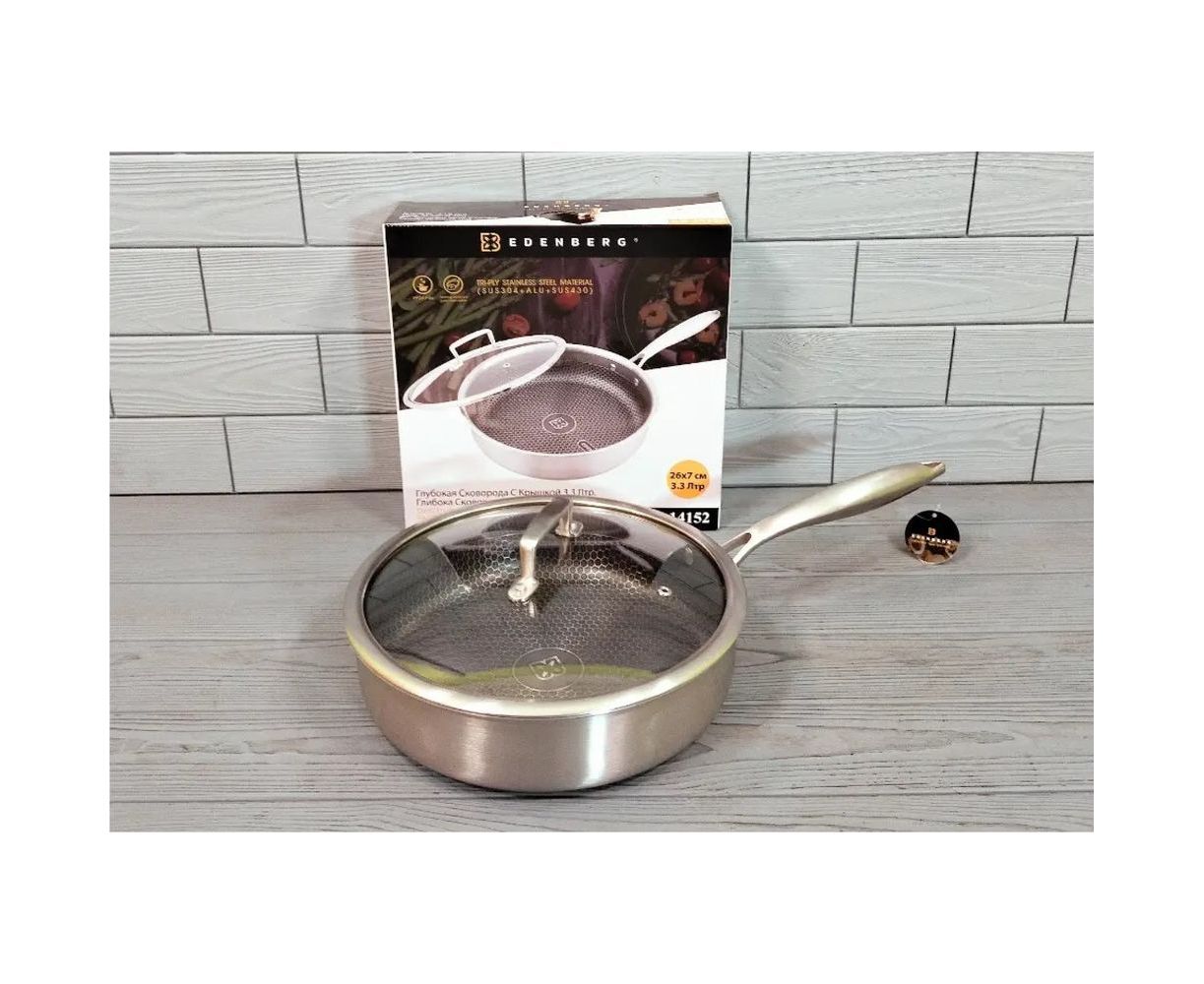 Глубокая сковорода Edenberg с крышкой 26 см нержавеющая сталь тефлон EB-14152 предназначена для бытового использования.