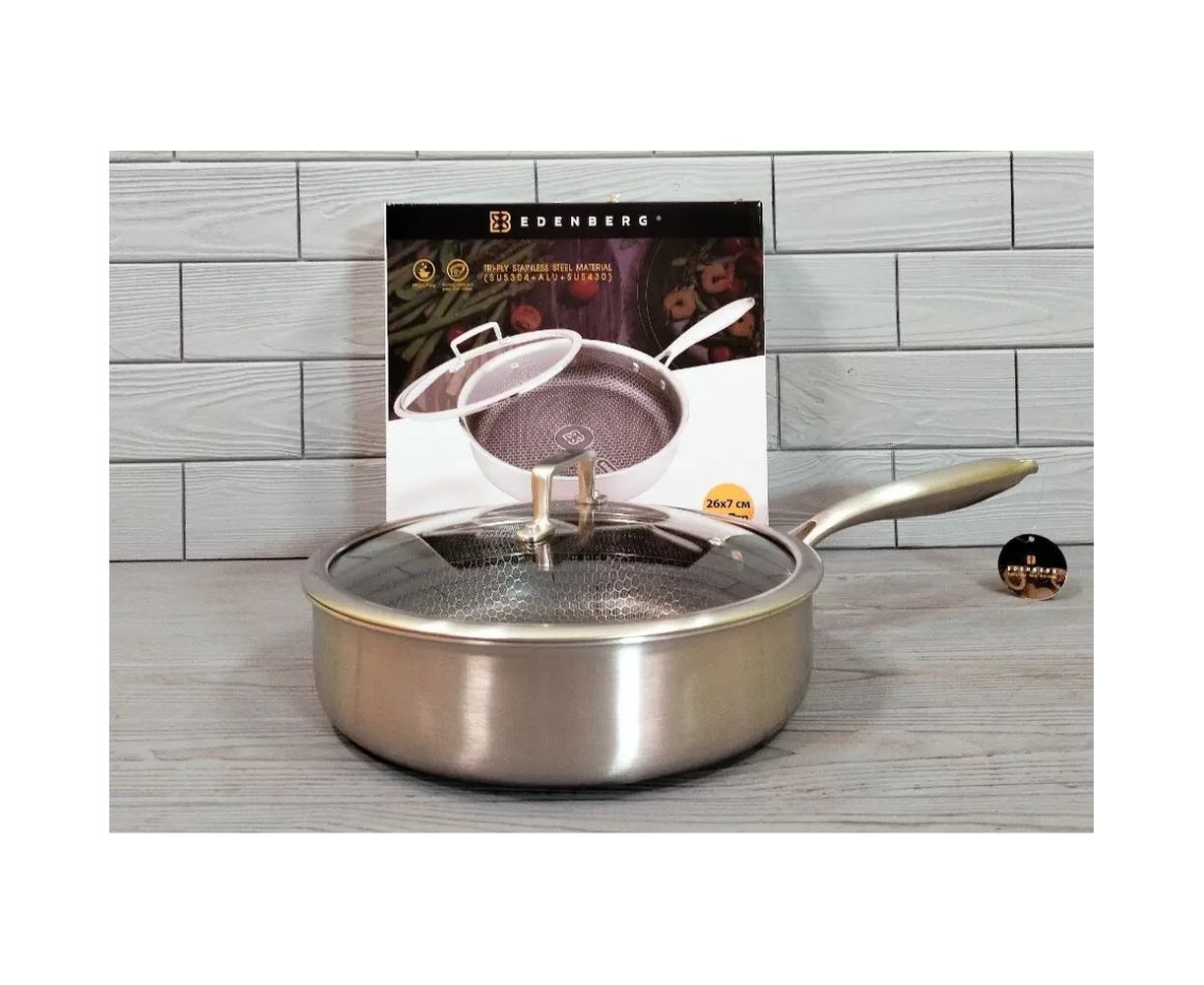 Глубокая сковорода Edenberg с крышкой 28 см нержавеющая сталь тефлон EB-14153 предназначена для бытового использования.