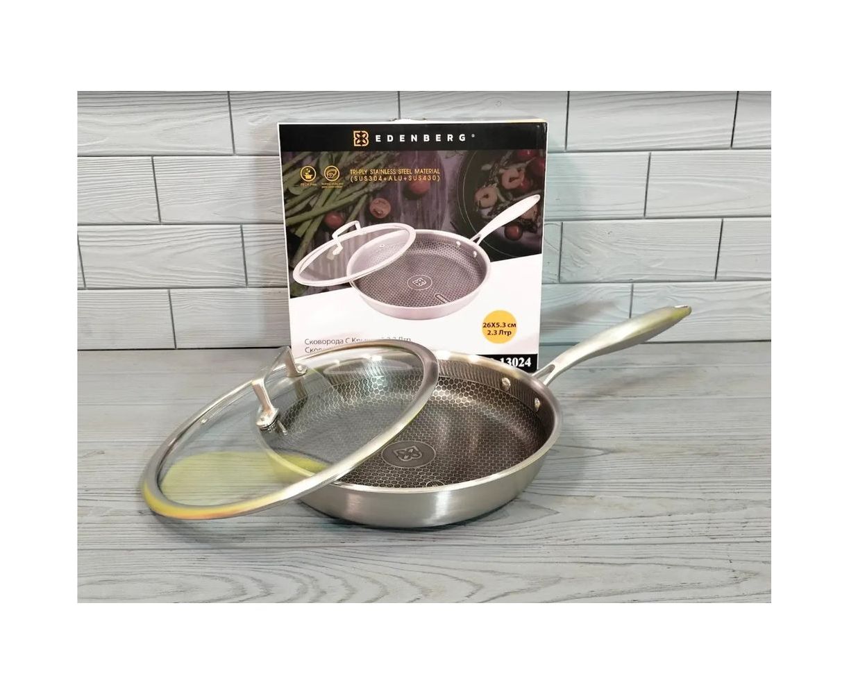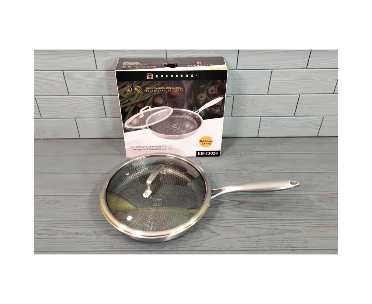 Сковорода Edenberg с крышкой 26 см нержавеющая сталь, тефлон EB-13024
