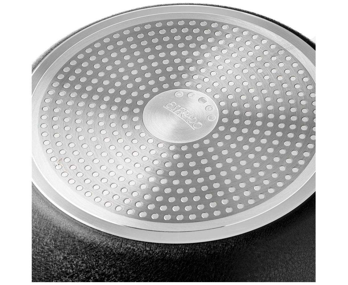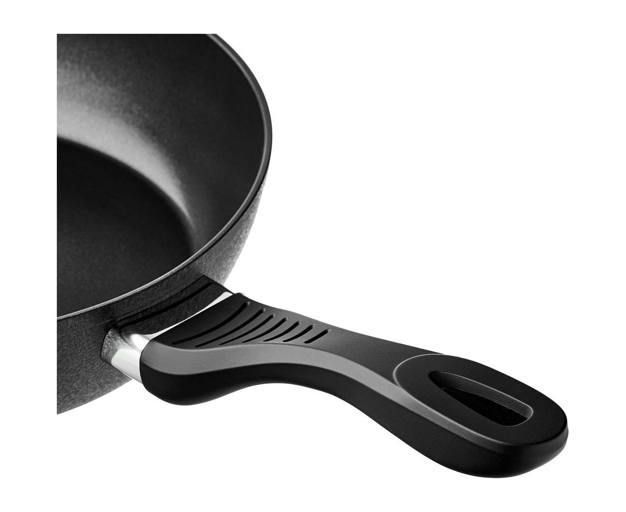 Отличается высоким бортом, благодаря которому ее можно использовать в качестве сотейника. Утолщенный кованый алюминий позволяет равномерно тушить и мясо, и овощи. Внешнее фактурное покрытие легко моется руками и в посудомойке, а также придает самобытный и стильный внешний вид, который украсит любую кухню. Надежная бакелитовая ручка с покрытием soft touch – последний штрих в уникальном дизайне коллекции.