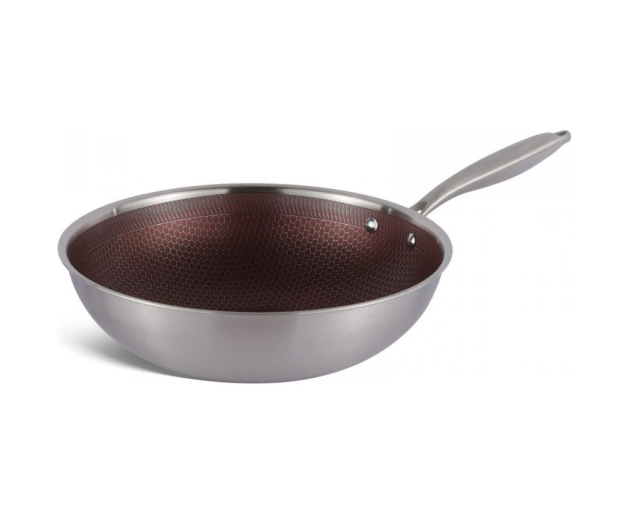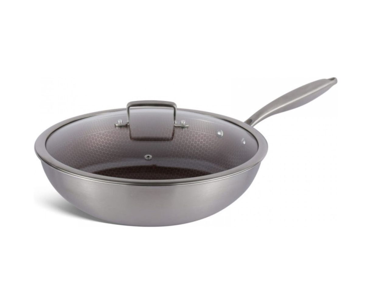 Сковорода-вок Edenberg с крышкой 30 cм нержавеющая сталь тефлон EB-14109