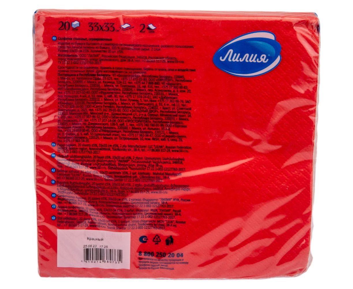 Бумажные салфетки Лилия 33x33, красный, 2 слоя, 20 листов 735