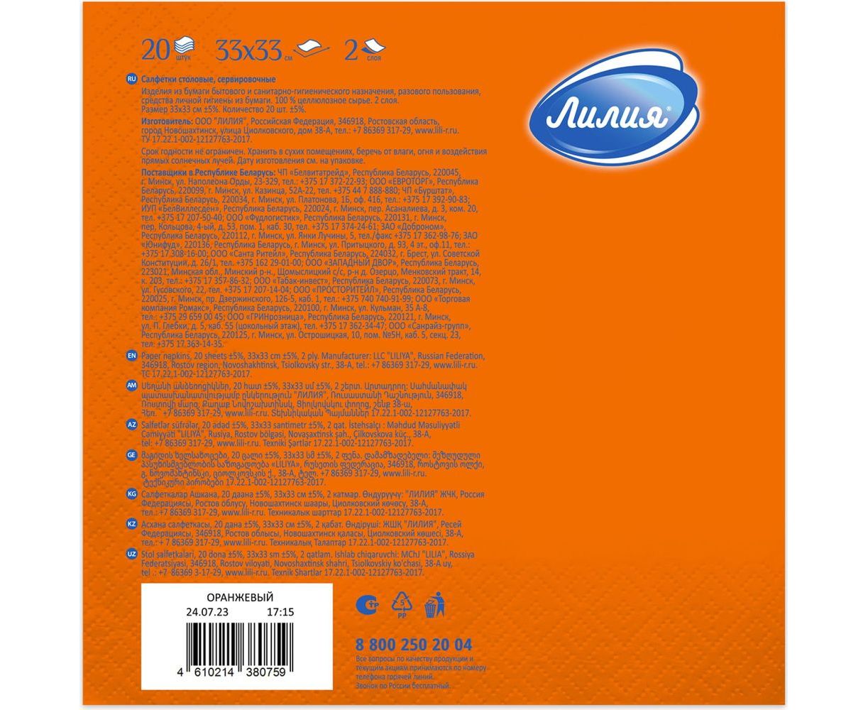 Бумажные салфетки Лилия 33x33, Оранжевый, 2 слоя, 20 листов 759