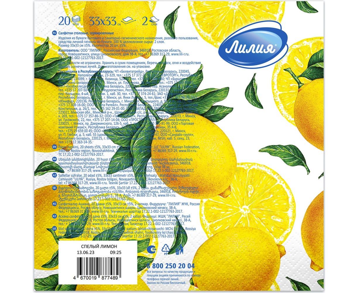 Бумажные салфетки Лилия 33x33, Спелый лимон, 2 слоя, 20 листов 7489