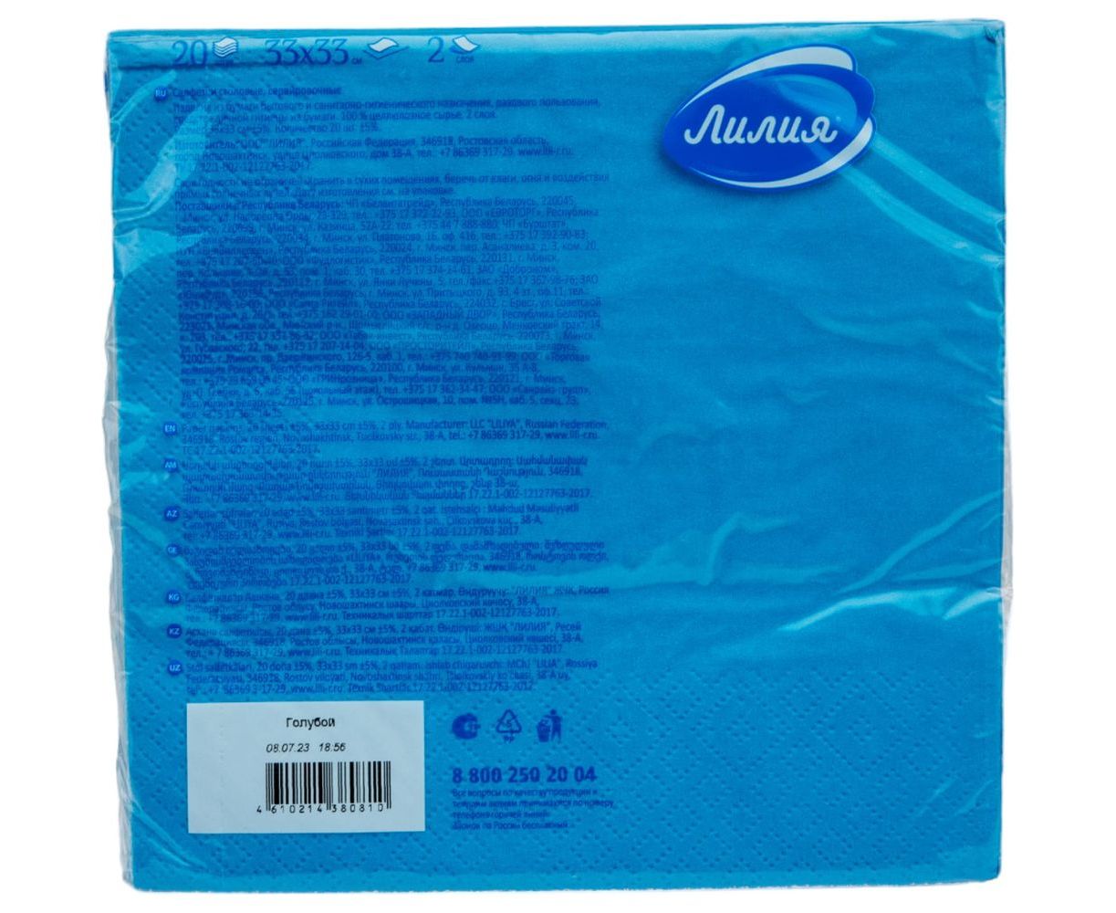 Салфетки бумажные 33x33 Голубой 2слоя 20листов Лилия 810