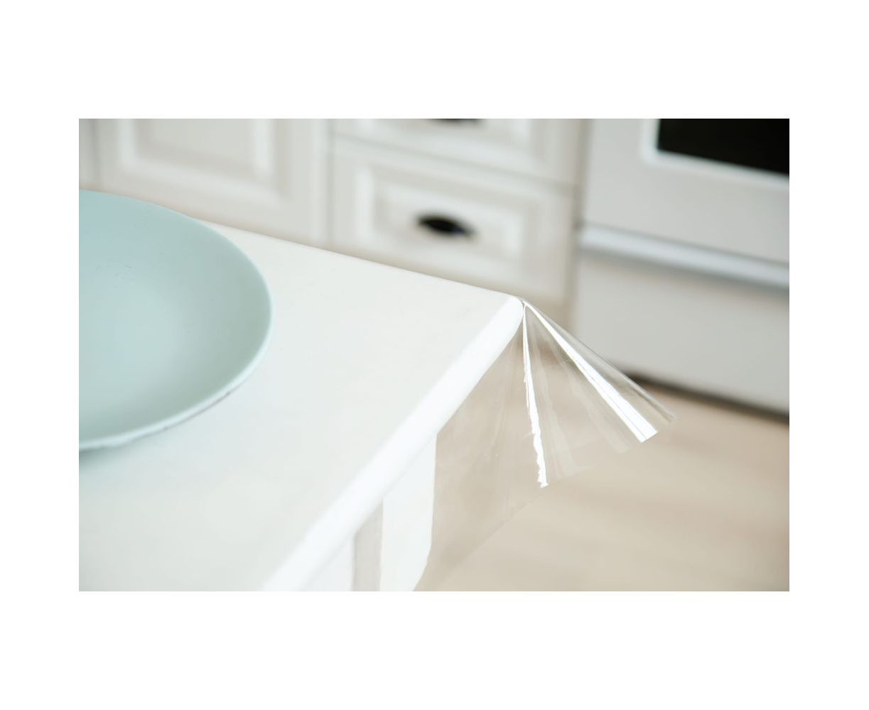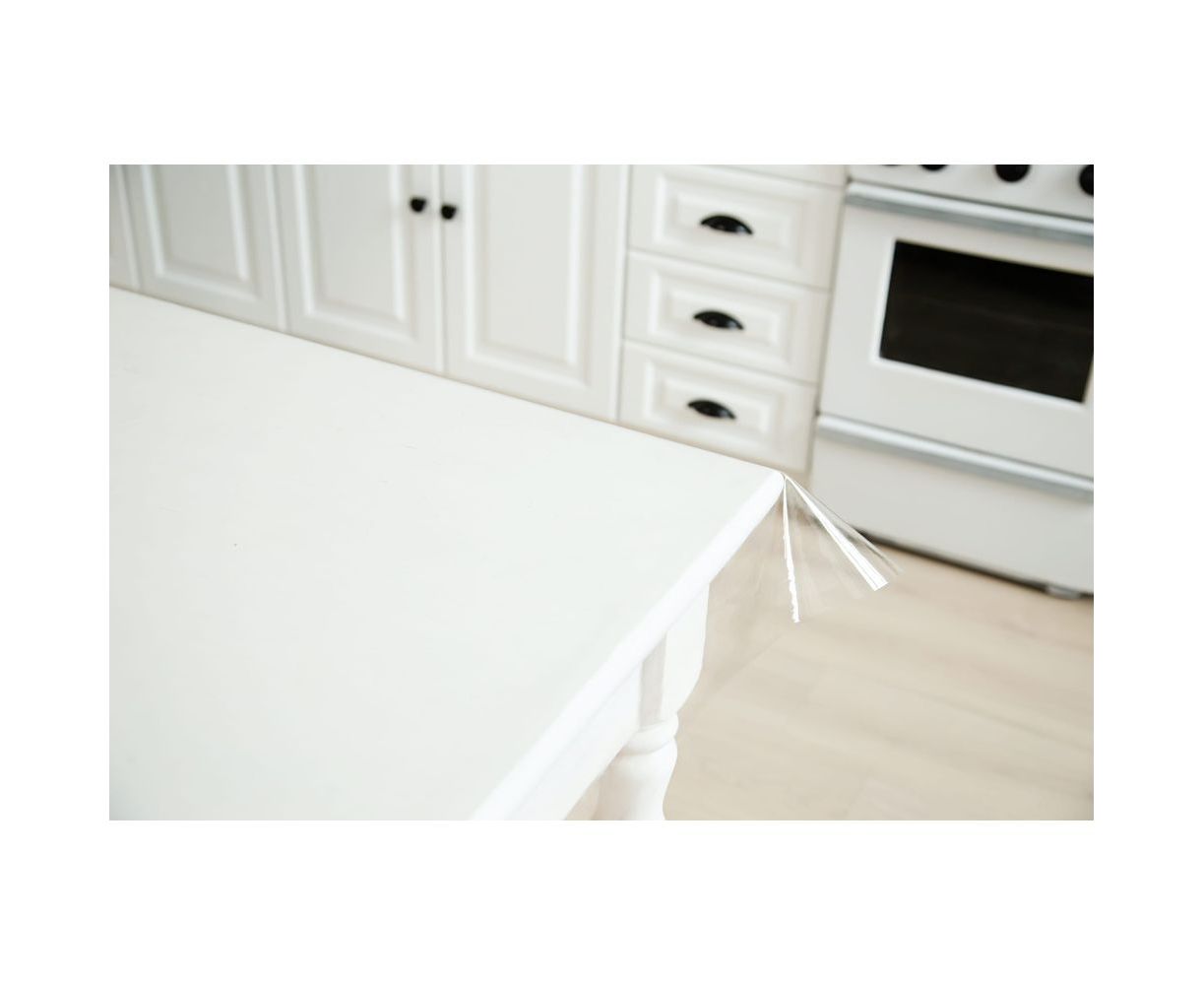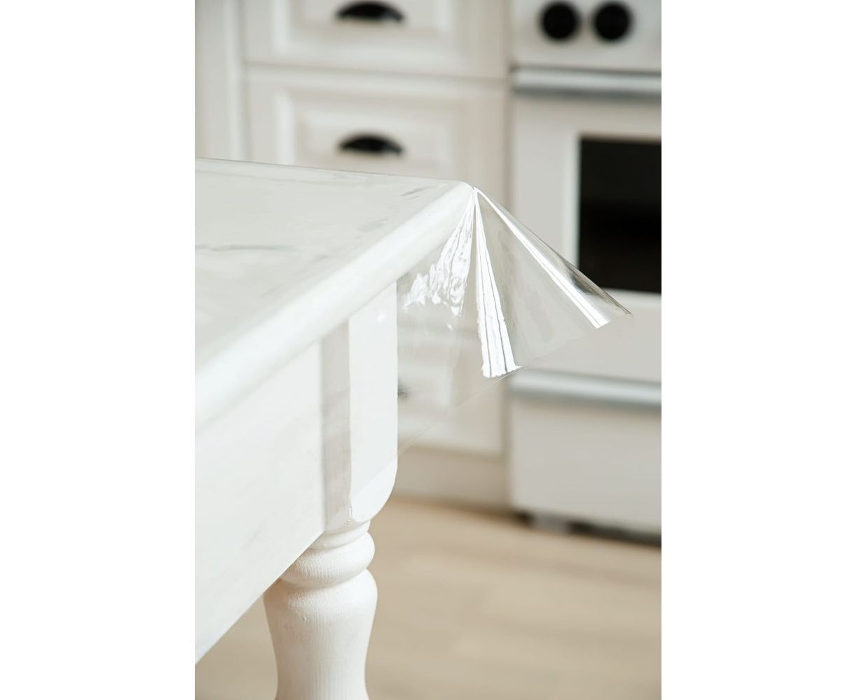 Прозрачная скатерть смотрится эффектно. Данная силиконовая пленка на стол будет задавать тон интерьеру и защищать поверхность стола.