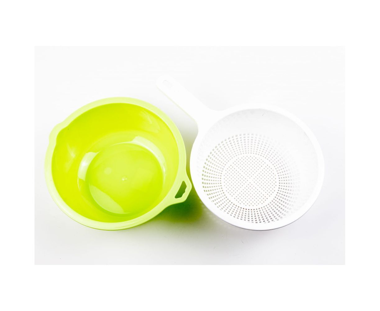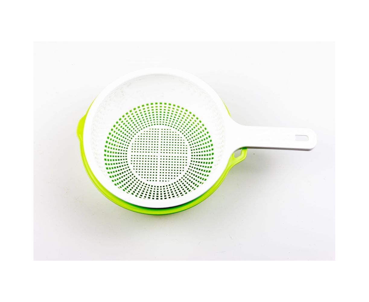 Двойной дуршлаг ПОЛИМЕРБЫТ диаметр 190 4384300 подойдет чтобыслить отдельно и жидкость, и продукты.