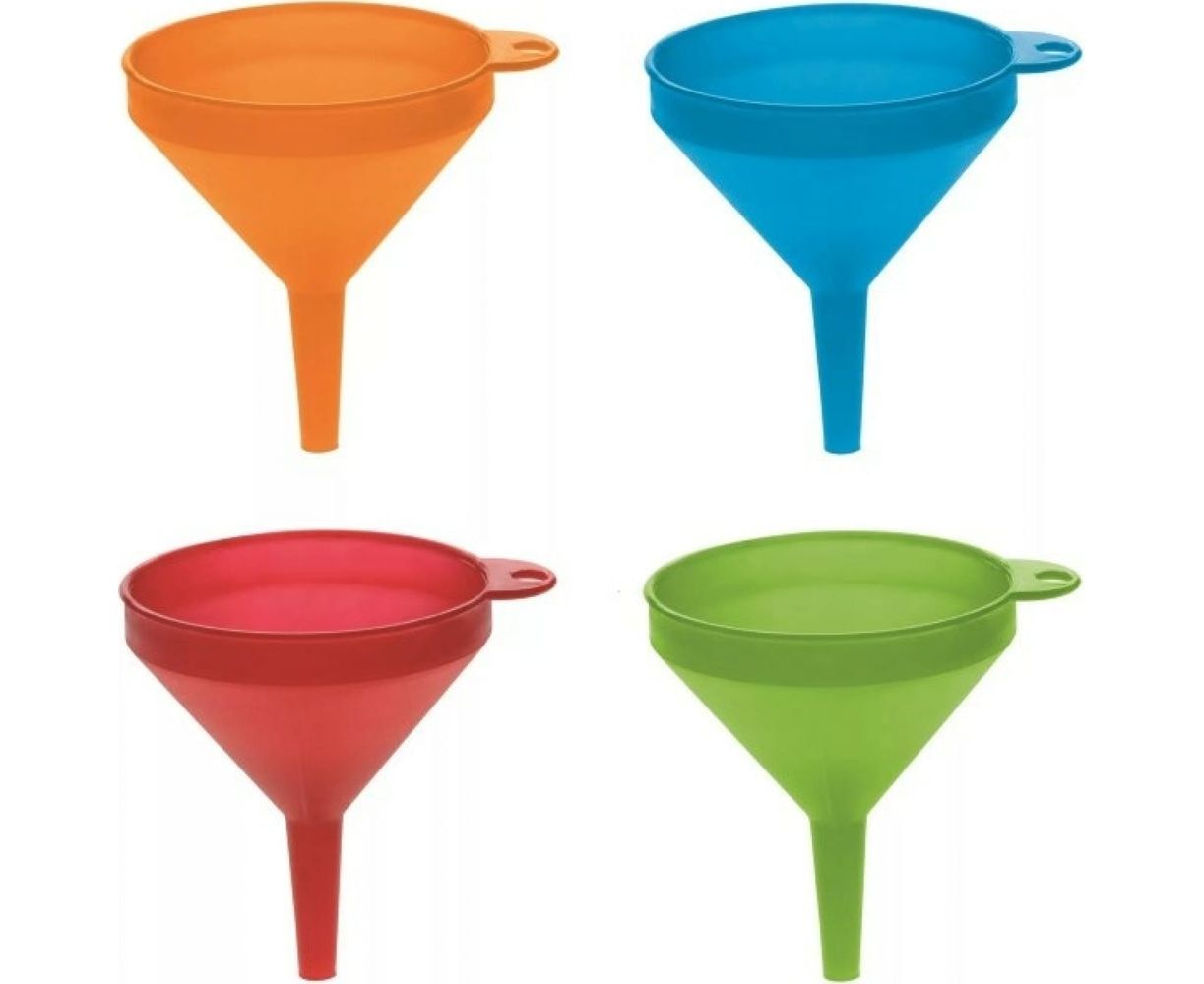 Воронка COSMOPLAST диаметр 8 см, пластик, ассорти 2276 предназначена для переливания жидкостей и пересыпания порошков через узкие отверстия.