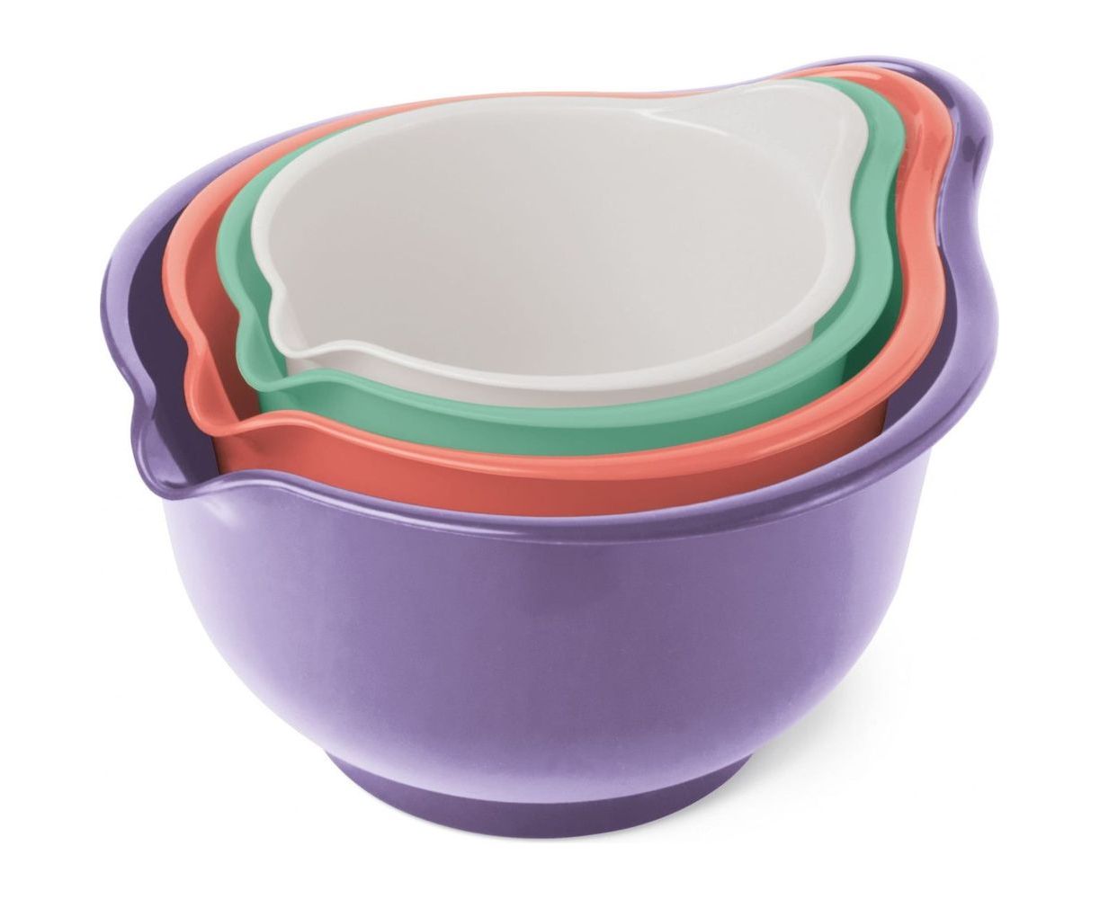 Миски для миксера «Мадена» имеют классическую глубокую форму, благодаря которой взбиваемое содержимое не разбрызгивается. Эргономичная ручка помогает удобно держать миску во время взбивания, а сливной носик удобен для переливания. Внутренняя мерная шкала позволит оценить объем приготовленного теста. Миску легко мыть, в т.ч. в посудомоечной машине.