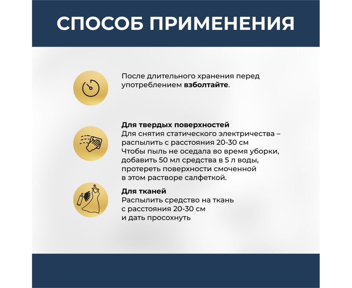 Устраняет прилипание, предотвращает осаждение пыли на ткань и твердые поверхности.