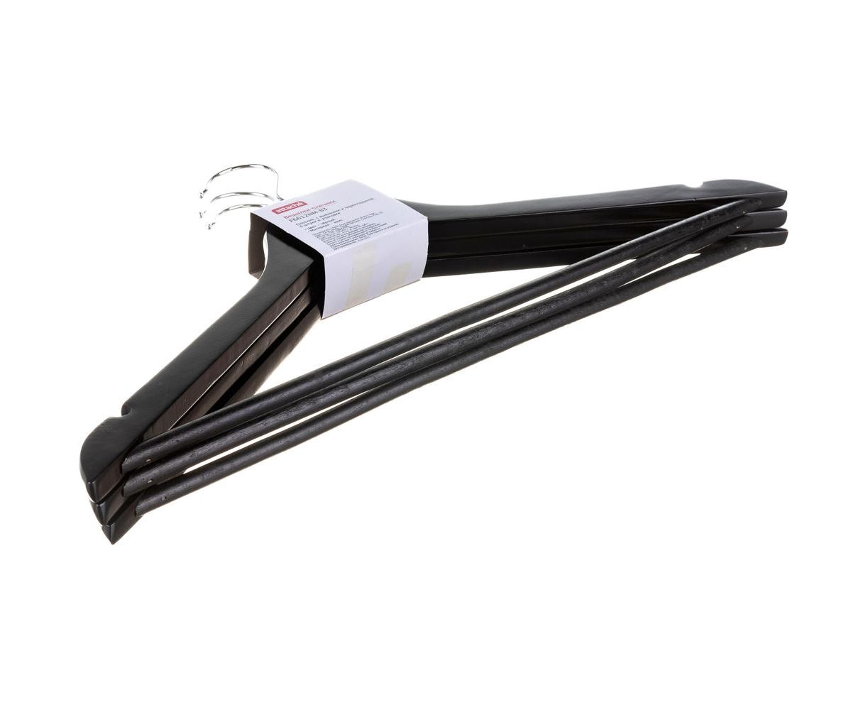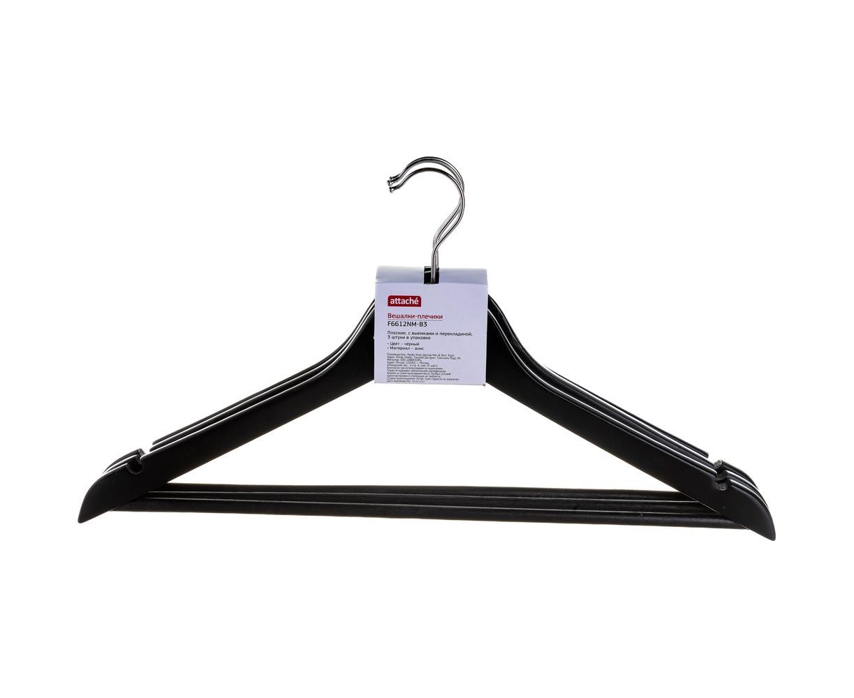 Деревянная вешалка-плечики с выемками и перекладиной Attache черная, размер 48-50, 3 шт 808705