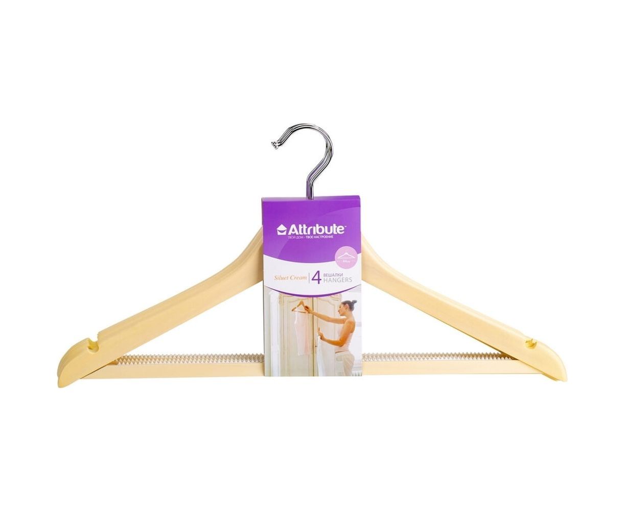 Набор универсальных вешалок ATTRIBUTE SILUET CREAM 44см, 4шт AHP224 предназначен для бережного хранения костюмов, пиджаков, рубашек, брюк.