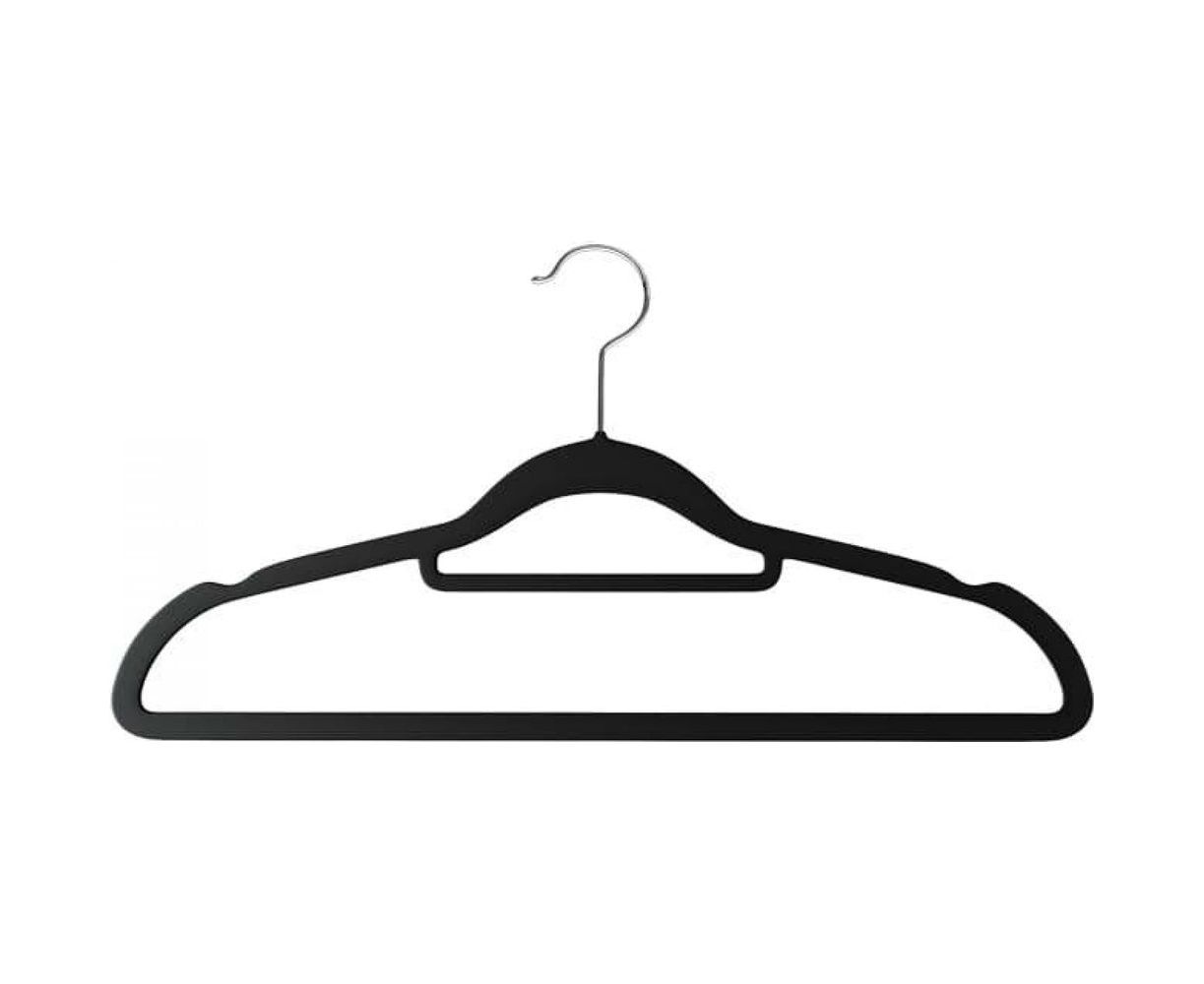 Вешалки HOMSU имеют черное вельветовое покрытие, благодаря чему вещи не соскальзывают. У металлических вешалок есть большая перекладина для брюк, а также маленькая планка для галстуков, поясов и других аксессуаров. Плечики бархатные очень компактные, антискользящие и при этом прочные. По краям имеются выемки для бретелей и белья.