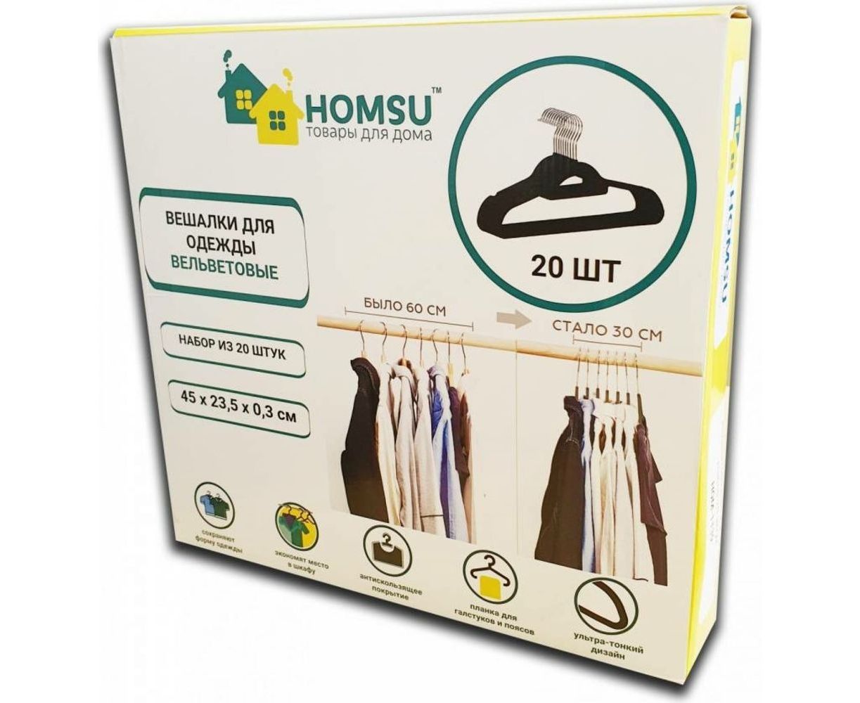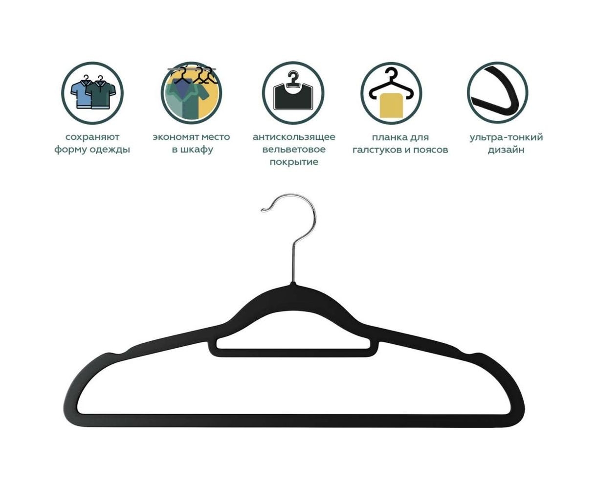 Противоскользящие вельветовые вешалки-плечики HOMSU набор 20 штук, черные HOM-1139 помогут организовать порядок в каждом доме.