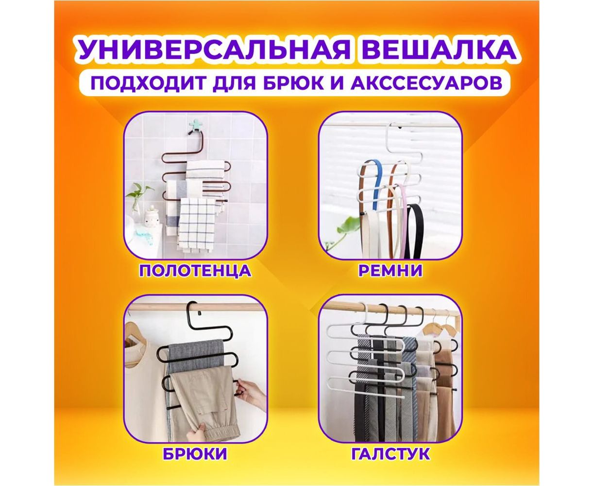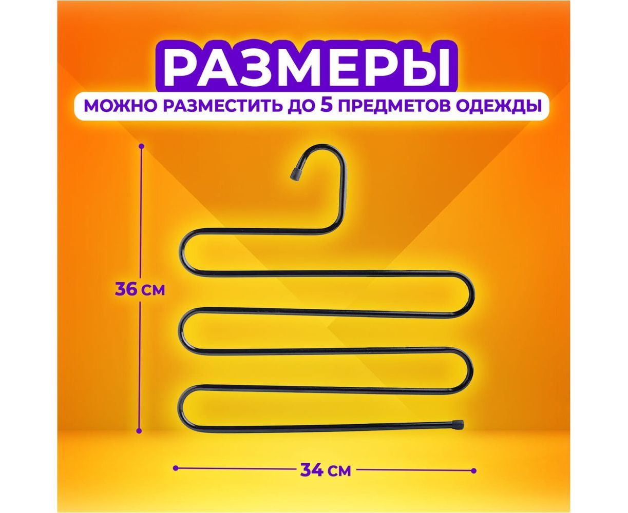Вешалка для брюк и одежды "Змейка" позволяет повесить большее количество одежды на вешалку, что экономит время и облегчает поиск нужной вещи в шкафу.