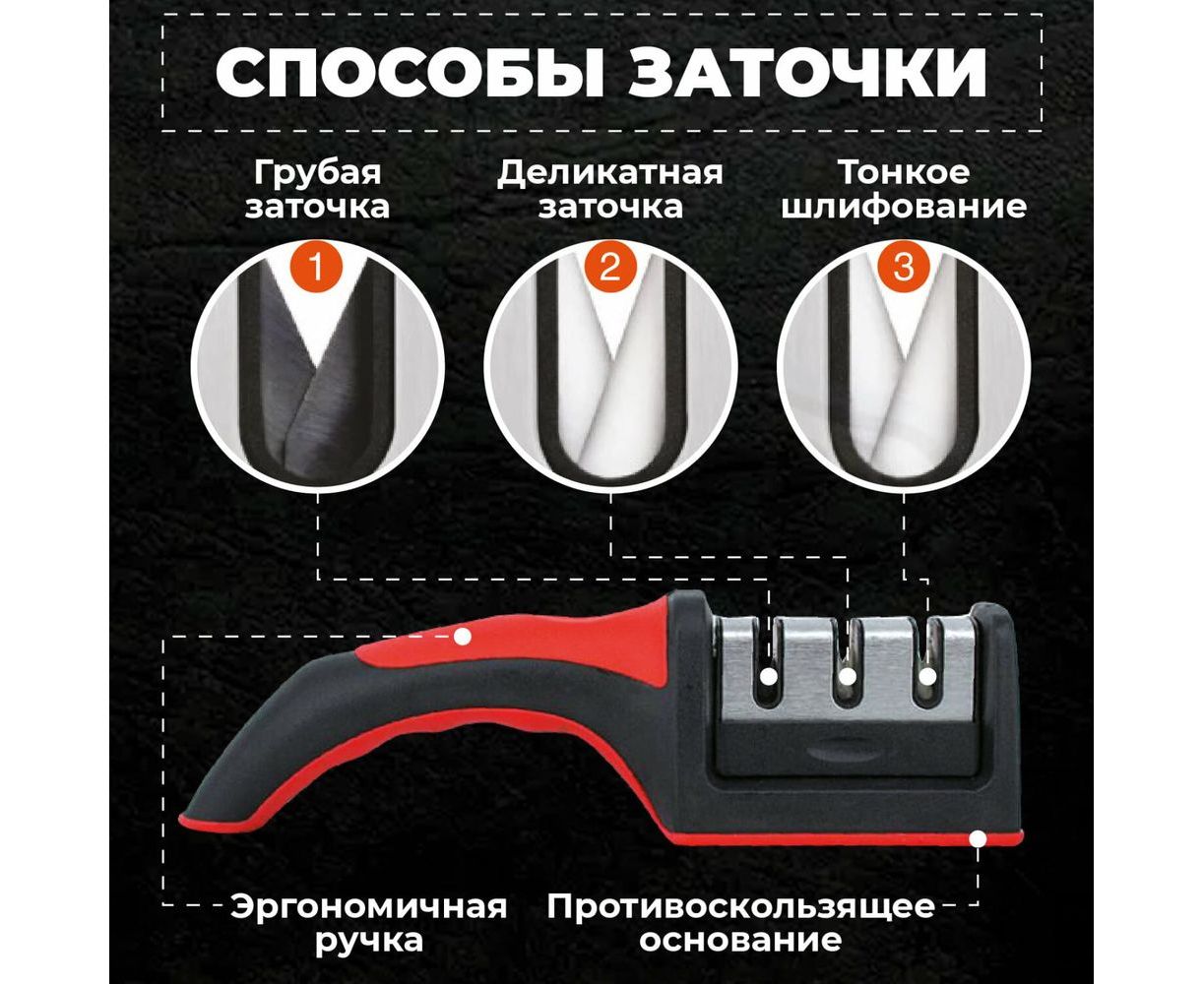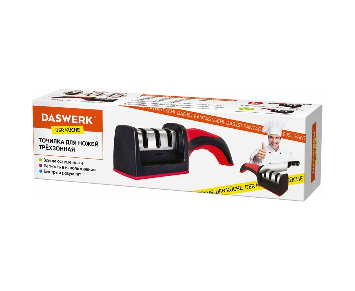 Точилка для ножей DASWERK ручная ножеточка, трёхзонная грубая, чистовая, шлифовка 608134