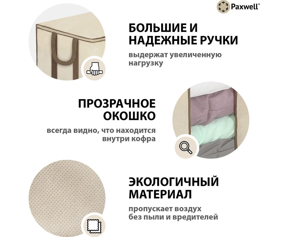 Мягкий кофр для хранения вещей Paxwell Ордер Лайт 60x50x20, бежевый ORSCLT_605020-101926 с прозрачной вставкой и ручками для переноски позволяет комфортно упаковать крупногабаритные вещи для хранения: